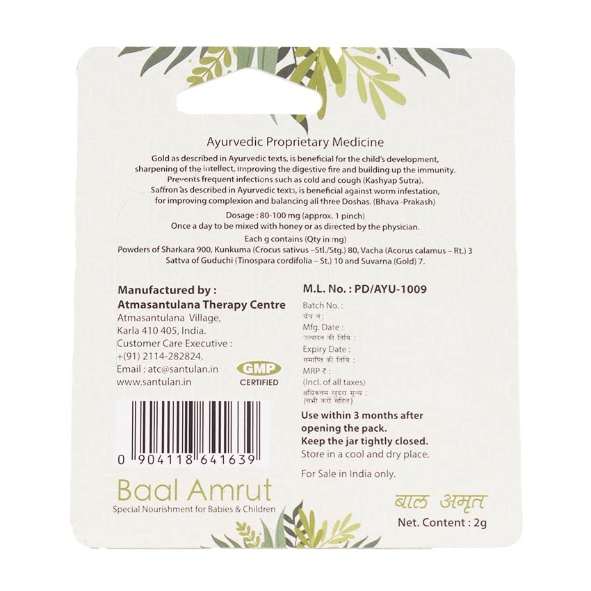 Santulan Ayurveda Baal Amrut-2GM Each (Pack Of 4) Enriched With Suvarna Varkha And Saffron and get Golden Oldie Herbs Sukanthi Pills-1gm