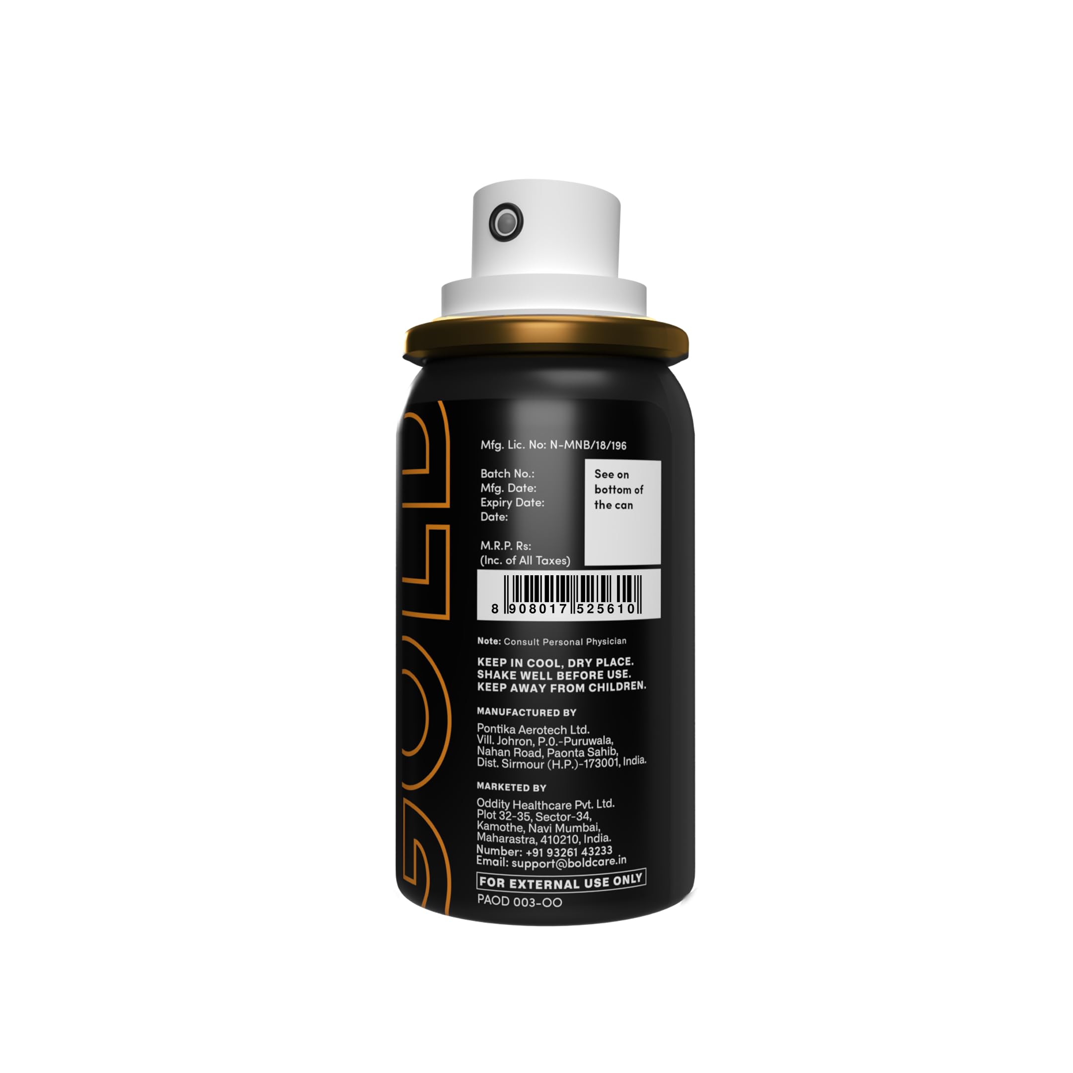 Bold Care EXTEND Gold Spray for Men - Designed for Sensitive Skin - Easy to Use & Effective - Alcohol Free - 20g - Pack of (2)