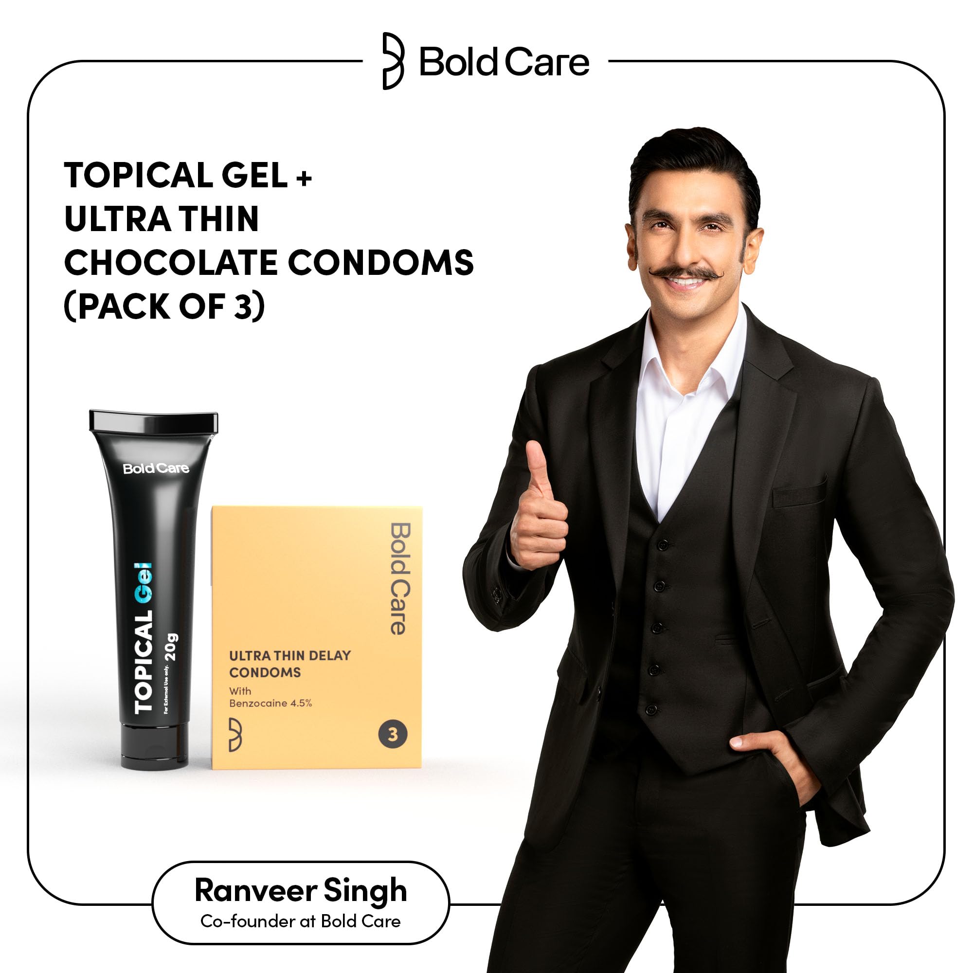 HomeHealth & PersonalPersonal CareMen's GroomingBold Care Extend Non-Transferable Gel For Men - 20 Gram (Pack Of 1) + Bold Care Ultra Thin Long Last Condoms - Lubricated Natural Latex (Pack Of 3) - Combo