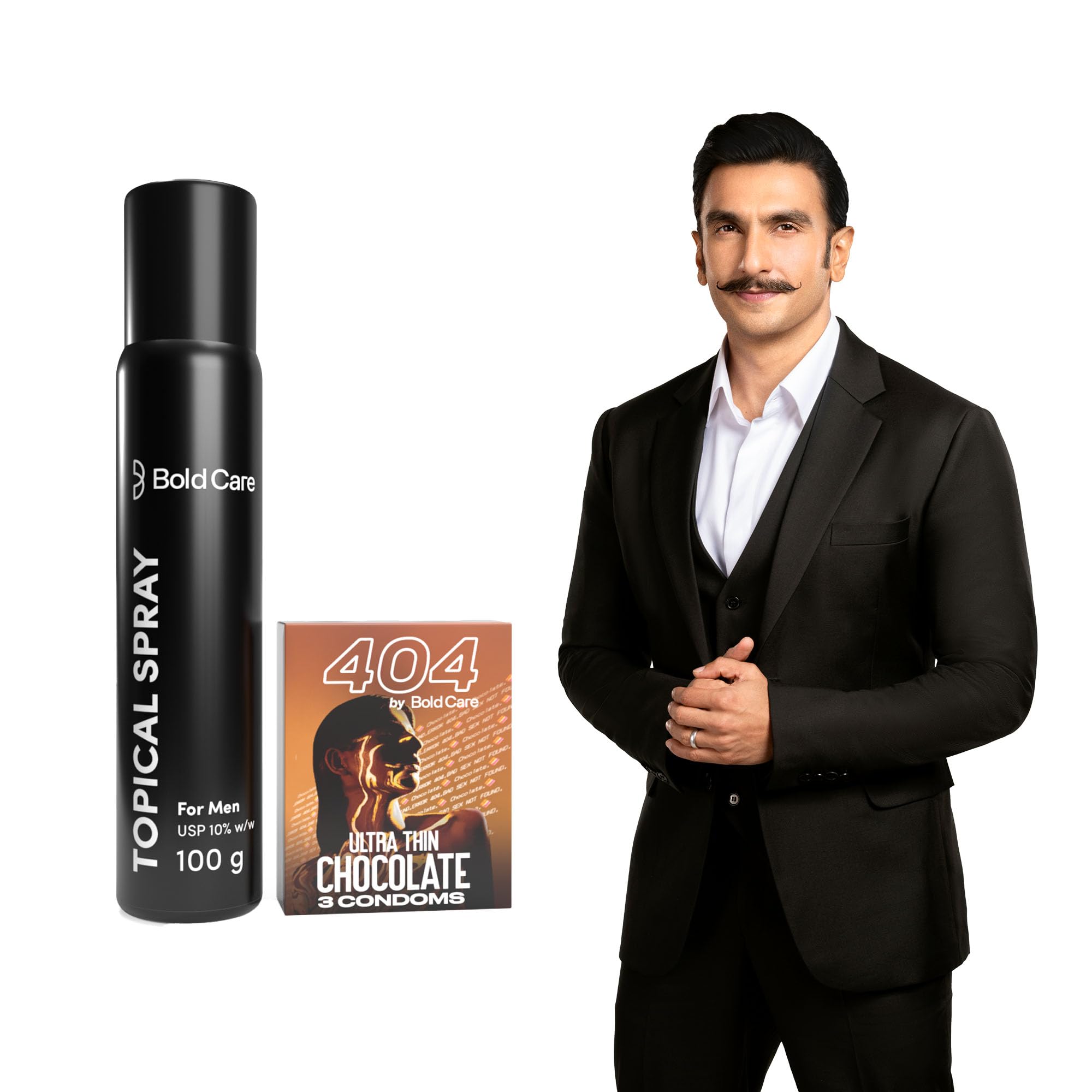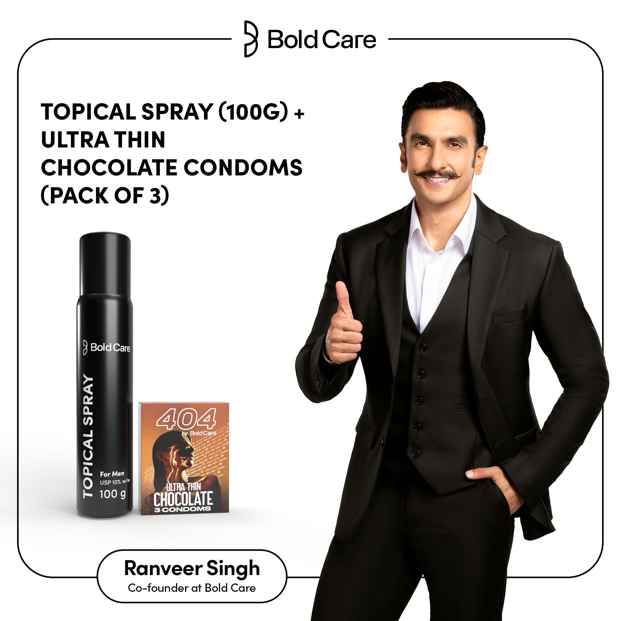 HomeHealth & PersonalPersonal CareMen's GroomingBold Care EXTEND Non-Transferable Spray for Men - 100g (Pack of 1) + Bold Care 404 Super Ultra Thin Chocolate Flavored Condoms For Men - 60 Microns With Disposable Pouches (Pack of 3) - Combo