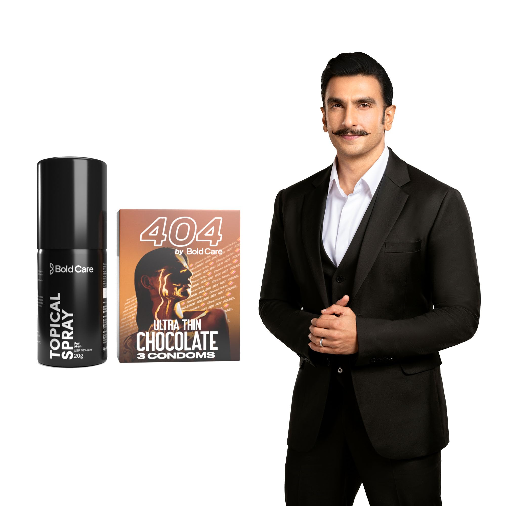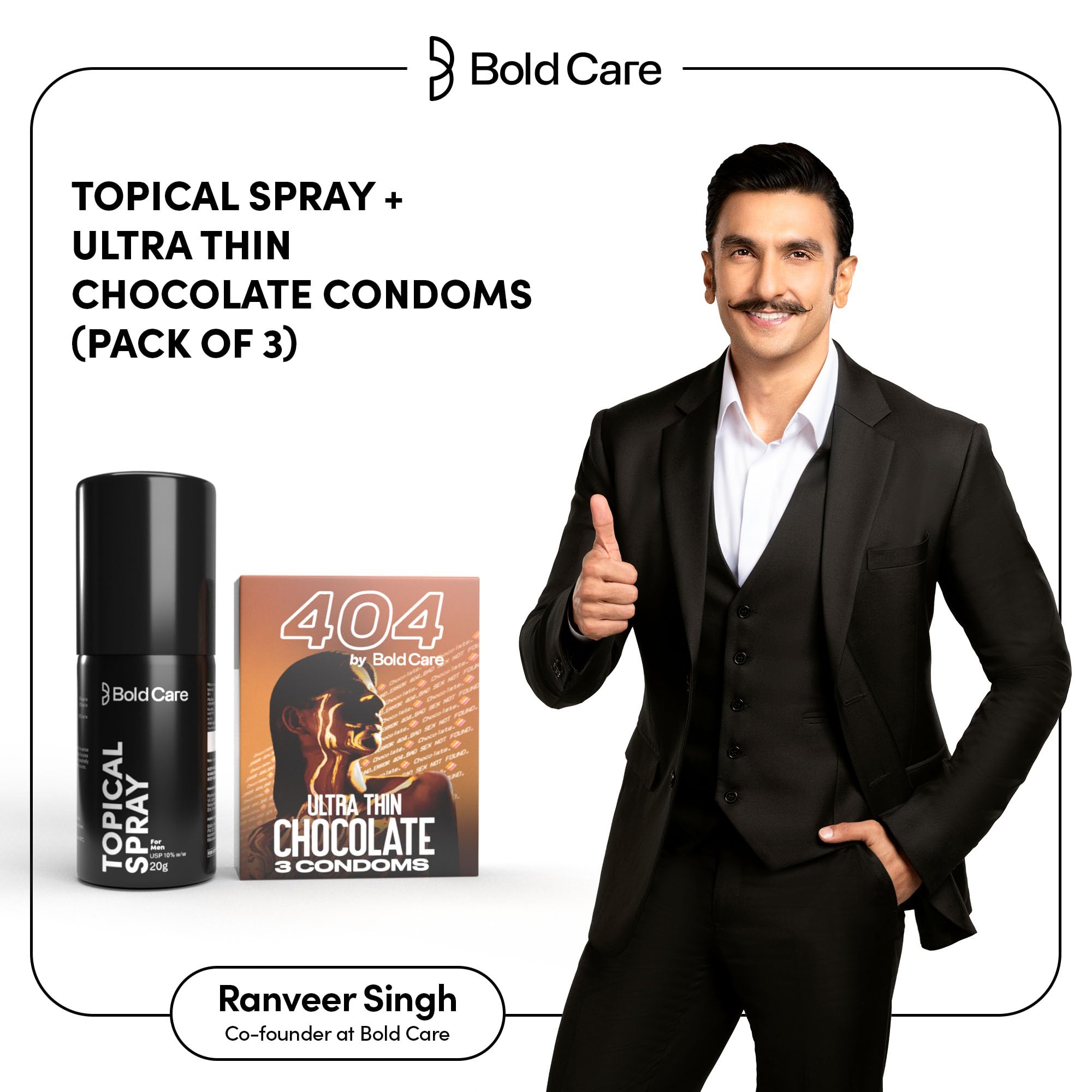 HomeHealth & PersonalPersonal CareMen's GroomingBold Care EXTEND Non-Transferable Spray for Men - 20g (Pack of 1) + Bold Care 404 Super Ultra Thin Chocolate Flavored Condoms For Men - 60 Microns With Disposable Pouches (Pack of 3) - Combo