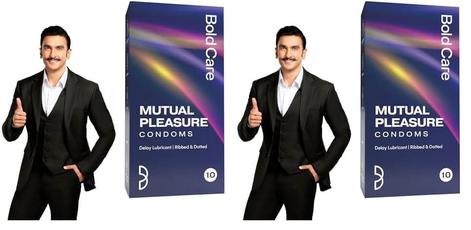 Bold Care Mutual Pleasure Dotted (576 Dots) Ribbed & D-LAY Condoms (Pack of 20) | Ultra thin with benzocaine & menthol lubrication | 60 Microns | Comes with Disposable pouch | Gold Standard Latex