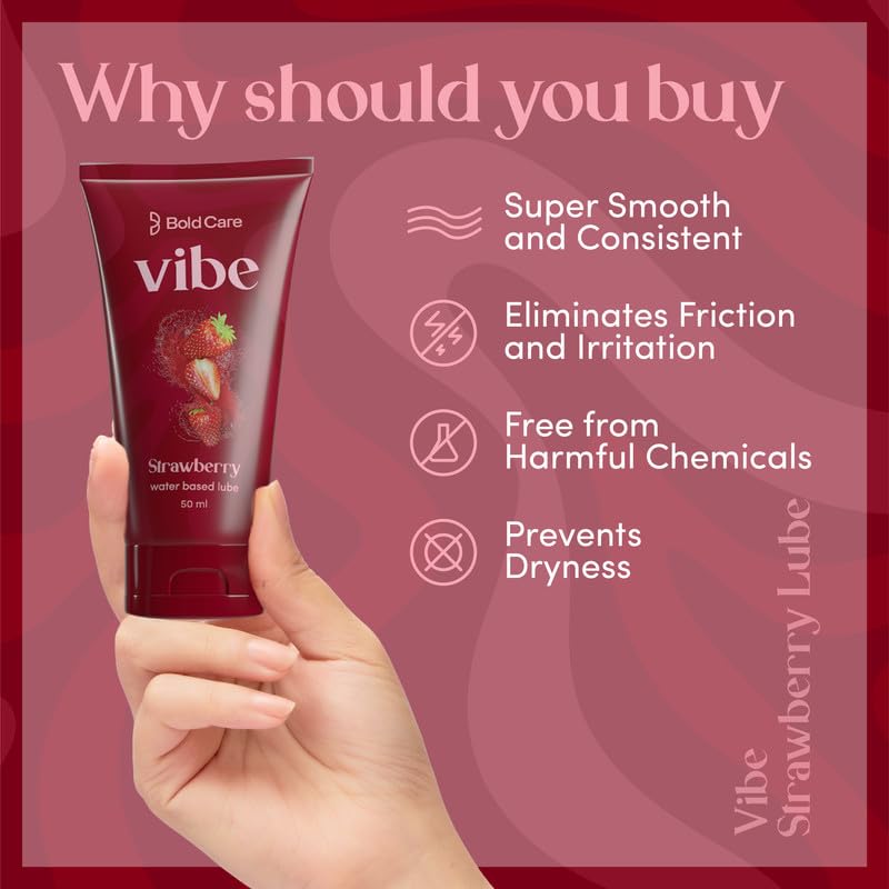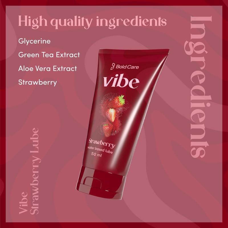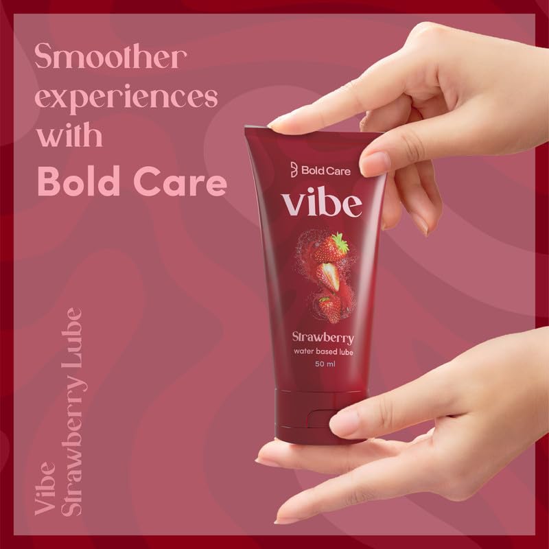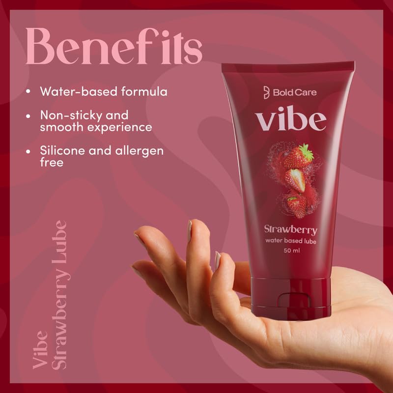Bold Care Vibe Strawberry - Personal Lubricant for Men and Women - Premium Strawberry Flavour - Water Based Lube - Skin Friendly Silicone and Paraben Free - No Side Effects - 50 ml