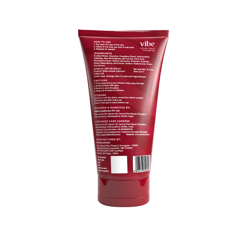 HomeHealth & PersonalPersonal CareMen's GroomingBold Care Vibe Strawberry - Personal Lubricant for Men and Women - Premium Strawberry Flavour - Water Based Lube - Skin Friendly Silicone and Paraben Free - No Side Effects - 50 ml