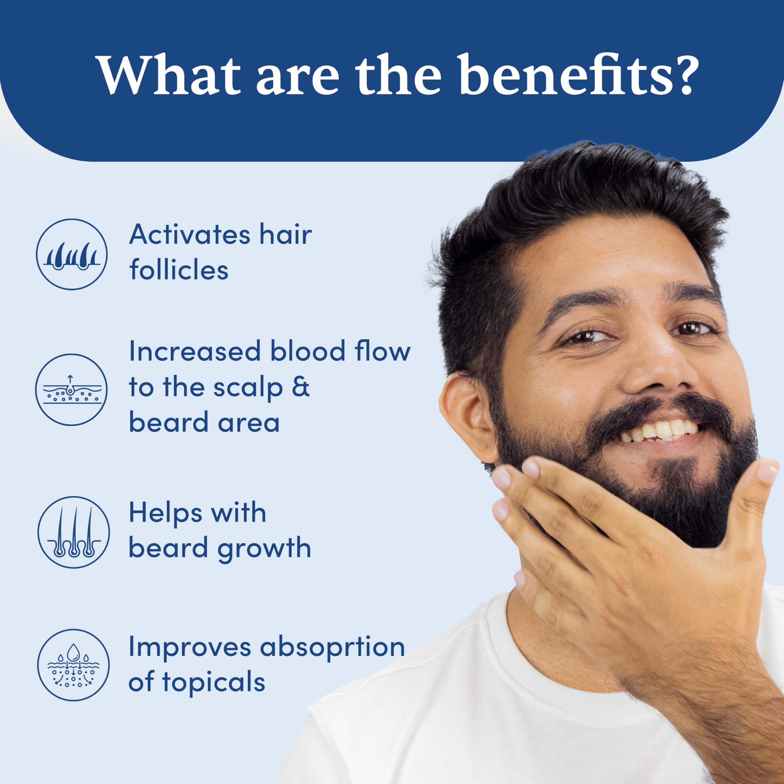 • BETTER RESULTS: Using the Derma Roller with topicand oils can help them to be absorbed properly. Always sterilize the activator before and after the use with Man Matters disinfectant solution.