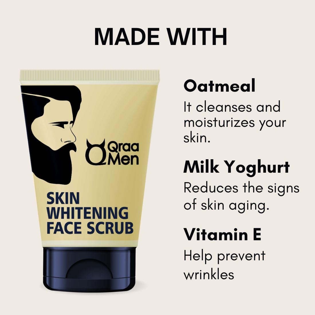 QRAA men skin whitening face scrubâ for men comes with an array of itional advantages face scrub for the men. Most importantly QRAA men skin whitening face scrubâ happens to be free from silicone mineral oil and other synthetic itives that might to harmful effects on the skin and comes with multipurpose benefits for the tough skin of the males as this face scrub has been enriched with the goodness of natural ingredients like oatmeal milk yogurt vitamin e etc. The beneficial goodness of components helps to the health and texture of the skin that helps hethe skin while revitalizing it from the core.