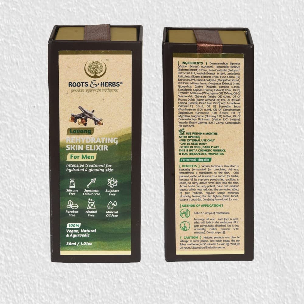 Roots & Herbs Ayurvedic Natural Treatment 100% Vegan No Paraben Lavang Rehydrating Skin Moisturizer Elixir for Men- 30 ML