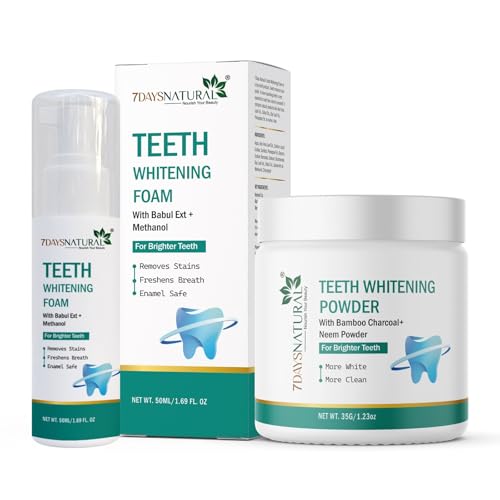 7 DAYS Teeth Whitening Magic Powder & Foam (Spearmint, 50 gm Each) Pack of -2