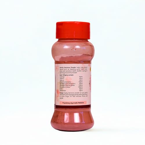 Amrita Dentone powder is an effective and natural remedy for spongy, swollen, bleeding gums and tooth ache. It helps reduce swelling in gums and roots. It is very effective in removal of plaque in diabetics. It helps control bad breath, discoloration and loss of taste.