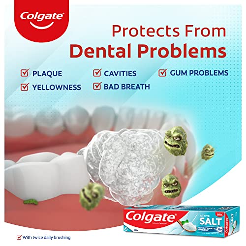 PREVENTS DENTAL PROBLEMS: Colgate Active Salt toothpaste with its unique formula strengthens germ fighting power and prevent cavities plaque build-up tartar formation gum problems yellowness of teeth bad breath etc. â