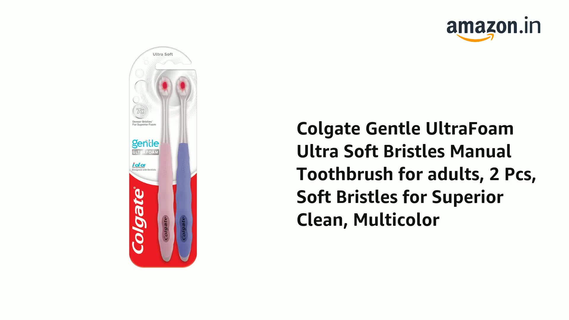 • Colgate Gentle Ultrafoam Toothbrush is an ultra-soft toothbrush specially designed or the gentlest care for your teeth. This super-soft toothbrush offers an enriched highly sensorial foaming experience that polishes teeth and massages gums