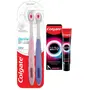 Colgate Gentle UltraFoam Ultra Soft Bristles Manual Toothbrush for adults 2 Pcs Soft Bristles for Superior Clean MulticolorBrushing your teeth when your teeth and gums are sensitive can prove to be a very unpleasant experience with a normal toothbrush. Colgate introduces the New Range of Ultra Soft Toothbrushes - Colgate Gentle. This range has been specially Designed with Dentists to offer Gentlest Care for your Teeth. It has also been endorsed by IDA. Colgate Gentle Ultrafoam is specially made for a highly sensorial brushing experience. This super-soft toothbrush is technologically enhanced to offer high-performance foaming with powerful clean. It comes with 5000 ultra-soft bristles which deliver high-performance foaming for an effective tooth & gum cleaning experience. It's super dense ultra-soft tapered bristle design promises ultimate gentlest experience with superior cleaning. Experience the gentlest yet powerful brushing experience with Colgate Gentle UltrafoamColgate Visible White O2 25g Teeth Whitening Toothpaste Peppermint Sparkle Active Oxygen Technology Enamel Safe Teeth Whitening ProductWhat does it mean to smile from the inside out? Because we believe in the transformative beauty of real smiles Colgate-Palmolive is proud to introduce a revolutionary new beauty essential - Visible White O2. Formulated with a patented Active Oxygen-based tooth whitening technology it WHITENS TEETH IN 3 DAYS (when used as directed on pack). As soon as you brush Colgate Visible White O2 gives off a warming effect inside your mouth. Along with this it releases a gentle wave of ultra-fine whitening foam - that's the Active Oxygen. The millions of active oxygen bubbles get absorbed gently into your enamel and whiten teeth from the inside out! Available in 2 refreshing flavours: Aromatic Mint: Like a rushing mountain stream the freshness of this herby wintergreen mint gives a refreshing flavor that lasts. Peppermint Sparkle: Fresh bright with slight hint of spice this delightfully balanced flavor brings a long-lasting flavor that feels like your mouth is sparkling. Recommended Usage: Put a pea size amount of our Colgate toothpaste on the head of the toothbrush. Insert the toothbrush into your mouth & use gentle short strokes to brush your teeth. For a better experience try with Colgate Visible White O2 Toothbrush.