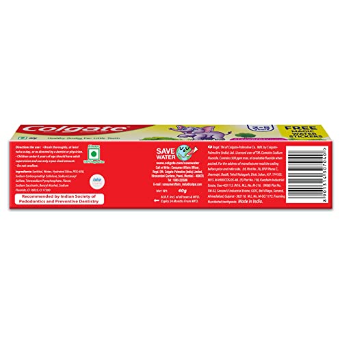 Colgate Kids Toothpaste For 2-5 Years, Strawberry Flavour, Gentle Protection, Prevents Cavities Tooth Paste With 50% Lesser Abrasive Formula For Protecting Against Cavities - 40 Gram