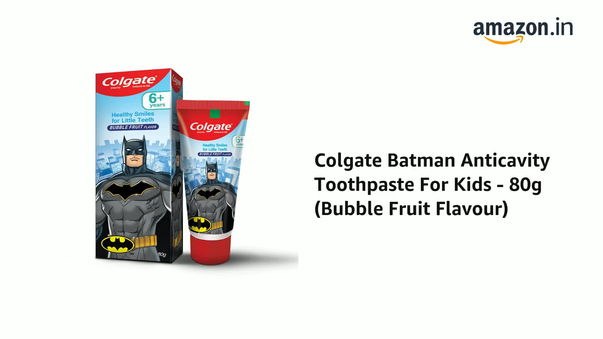 Introduce your kids to a lifetime of robust dental health with Colgate Kids Batman Toothpaste. Specially formulated for young superheroes this toothpaste combines fun and functionality. Its bubble fruit taste is loved by children fostering a habit they'll enjoy. With every brush your child's teeth gain fluoride-strengthened protection against cavities while maintaining enamel health. The playful Batman motif and sparkling colorful gel will bring excitement to their daily routine making brushing a thrilling adventure. Recommended for young ones to keep their smiles bright and healthy.