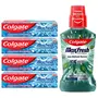 Colgate MaxFresh 600g (150g x 4 Pack of 4) Breath Freshener Toothpaste Peppermint Ice Blue Gel Paste with Menthol Cooling crystals controls Bad BreathSwitch on the power of freshness with Colgate Maxfresh toothpaste that refreshes you and helps you seize the day because every morning is a fresh start. The blue gel toothpaste contains unique cooling cyrstals that give you an intense cooling while you brush. Recommended Usage: Put a pea size amount of our Colgate toothpaste on the head of the toothbrush. Insert the toothbrush into your mouth & use gentle short strokes to brush your teeth. For a better experience try with Colgate Gentle Enamel Toothbrush. For optimal results brush twice daily for 2min. Colgate is India's most trusted oral care brand. As a trusted partner we are committed to doing business with integrity and respect for all people and the world around you. Colgate offers quality oral care products including toothpastes and toothbrushesas well as expert dental health information. Colgate toothpastes are always 100% vegetarian and gluten free. We care about our environment Colgate India is the nation's first to earn True Zero Waste Platinum certification for all its four manufacturing sites in India from Green Business Certification Inc. (GBCI). This toothpaste is made in India with highest quality standards.Colgate Plax Antibacterial Mouthwash 24/7 Fresh Breath - 250ml (Fresh Mint)Colgate Plax Fresh Mint mouthwash removes over 99% of germs that cause bad breath and cavities giving you a fresher and cleaner mouth than brushing alone. It has a refreshing freshmint after taste.This mouthwash contains no alcohol (non-alcoholic) hence does not cause any burning sensation when you use it. Yet it removes 99% germs instantly. You will experience an instant blast of freshness and 10X longer cooling sensation compared to brushing alone. This mouthwash gives you 24/7 control over bad breath with regular use. How to use: Fill the cap to its line (20ml). Rinse mouth with mouth wash thoroughly for 30 seconds gargle and expel. Do not swallow. This mouth wash can be used by both men and women When to use: After brushing An effective mouth freshner for your post meal needs. Colgate is India's most trusted oral care brand. As a trusted partner we are committed to doing business with integrity and respect for all people and the world around you. Colgate offers quality oral care products including toothpastes and toothbrushesas well as expert dental health information.