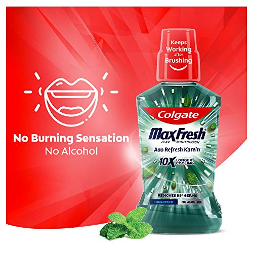Colgate Plax Fresh Mint mouthwash removes over 99% of germs that cause bad breath and cavities giving you a fresher and cleaner mouth than brushing alone. It has a refreshing freshmint after taste.This mouthwash contains no alcohol (non-alcoholic) hence does not cause any burning sensation when you use it. Yet it removes 99% germs instantly. You will experience an instant blast of freshness and 10X longer cooling sensation compared to brushing alone. This mouthwash gives you 24/7 control over bad breath with regular use. How to use: Fill the cap to its line (20ml). Rinse mouth with mouth wash thoroughly for 30 seconds gargle and expel. Do not swallow.This mouth wash can be used by both men and women When to use: After brushing An effective mouth freshner for your post meal needs.Colgate is India's most trusted oral care brand. As a trusted partner we are committed to doing business with integrity and respect for all people and the world around you. Colgate offers quality oral care products including toothpastes and toothbrushesas well as expert dental health information.
