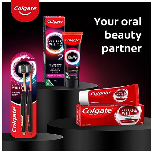 Colgate-Palmolive presents a revolutionary new Oral Beauty essential - Visible White O2. Formulated with a patented Active Oxygen-based tooth whitening technology. It starts whitening teeth in 3 days (when used as directed on pack). As soon as you brush Colgate Visible White O2 Toothpaste gives off a warming effect inside your mouth. Along with this it releases a gentle wave of ultra-fine whitening foam - that's the Active Oxygen. The millions of active oxygen bubbles get absorbed gently into your enamel and whiten teeth from the inside out! For best results pair with Colgate Visible White O2 toothbrush thrice a day as directed on pack.