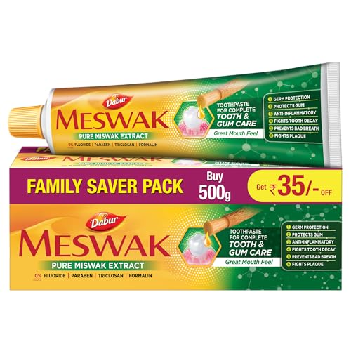 If you want to start your day with something that is truly unique go grab a pack of Dabur Meswak today. Dabur Meswak is made from pure extract of rare Miswak herb which grows slowly resisting the brutal forces of nature amidst the sand dunes of Africa and South Asia. Even a small portion of this herb is capable of providing Complete Oral Care to you. The ingredients of Miswak herb truly make Dabur Meswak unique. It has Resins which form a layer over the enamel - protecting against caries; Silica which removes stains; Alkaloids exerts a bactericidal effect and stimulatory action on gingival Essential oils stimulates the flow of saliva ehich works as an antiseptic Vitamin C helps in healing and repair of tissues etc. The best part of this unique toothpaste is the amazing mouthfeel it leaves behind which lasts the whole day.