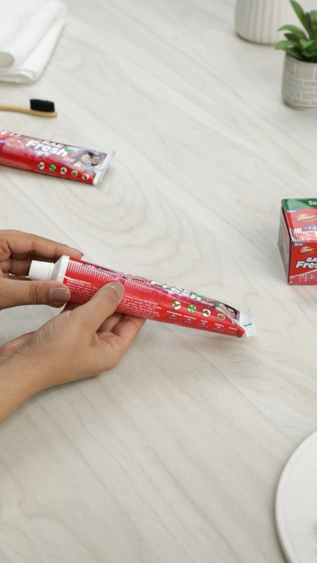Are you Bae Ready ? Dabur Red Bae Fresh Gel contains 5 Freshness Natural Activs & is clinically proven to give you 12 hour freshness* so that you can always be BAE READY. Ayurvedic 5 Freshness Natural Activs ->Wintergreen Oil : fights Bad Breath ; Peppermint Oil : Freshens Breath ; Clove Oil : Fights Cavity Germs ; Takkola Oil : Fights Malodour Germs ; Tumubru : Relieves Toothache