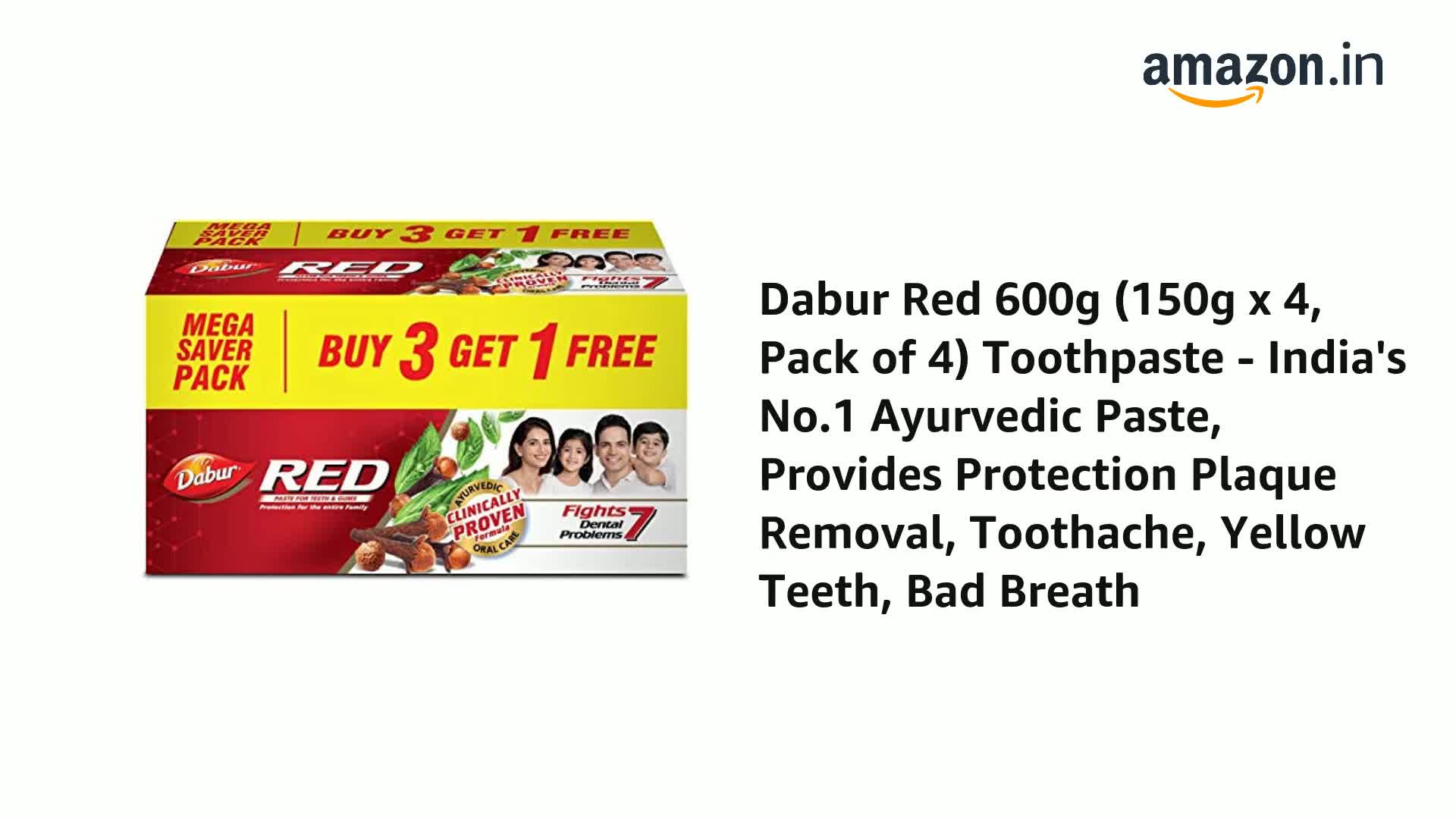Dabur Red Paste is an unmistakable name when it comes to holistic Ayurvedic oral care. It is India's No.1 Ayurvedic Fluoride Free Paste and carries a unique blend of traditional Indian medicine and modern pharmaceutical technology taking the best from both worlds it provides complete protection from 7 Dental problems :cavities gingivitis plaque toothache bad breath yellow teeth plus weak teeth and gums. It also provides 35% betterment on oral care hygiene index in comparison to other regular toothpastes . It is a complete oral care solution for your entire family as it is suitable for kids too. Our other specialized oral care product include Dabur Red Gel Ayurvedic Gel for freshness & effective oral care and Dabur Lal Dant Manjan tooth powder for strong teeth & healthy gums.