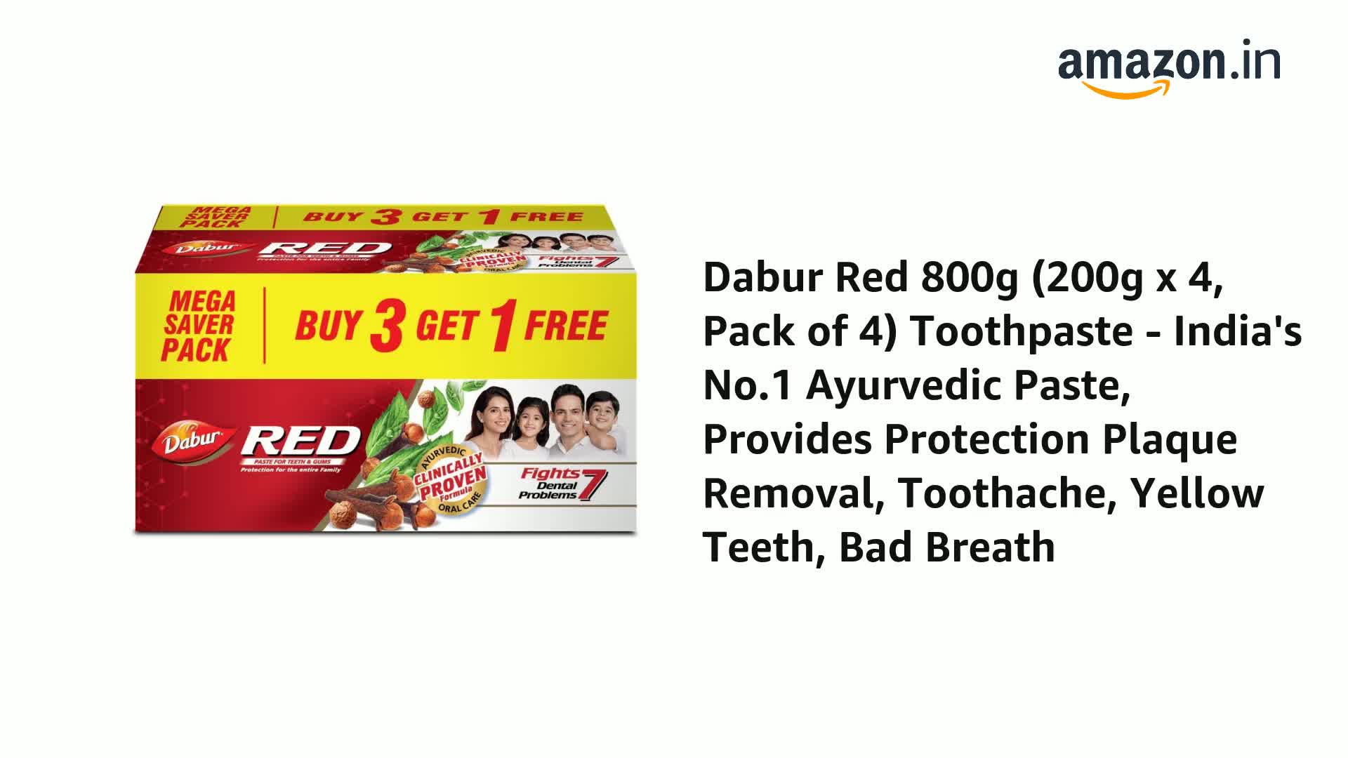 DABUR RED PASTE has a clinically proven formula that fights against 7 DENTAL PROBLEMS 1) TOOTHACHE 2)CAVITIES 3) plaque 4) germs 5) bad breath 6) yellowing and 7) bleeding gums. It is fluoride free and made with 13 potent ayurvedic ingredients including Pudina Satva that provides fresh breath Laung ka Tail that relieves toothache Shunthi that has anti-inflammatory and antibacterial properties and Tomar Beej that has antiseptic and antibacterial properties. It is clinically shown to provide a remarkable 35% improvement in oral care hygiene compared to regular toothpaste and provides complete protection for the entire family.