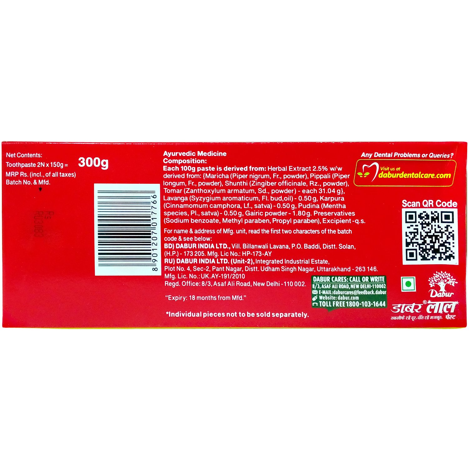 Dabur Red Toothpaste - Laung Pudina and Tomar 300g Carton