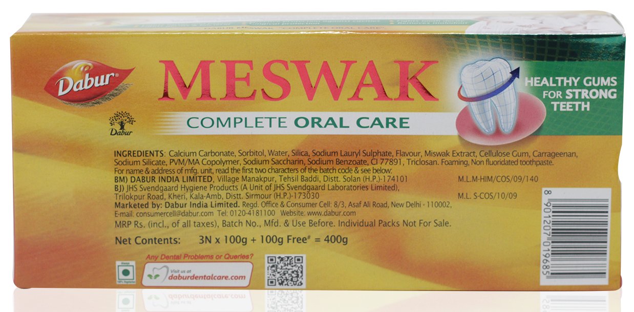 Dabur Toothpaste - Meswak (3+1) x100g Pack