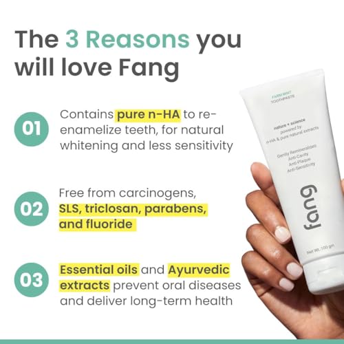 Strengthen tooth enamel: Get positive impact on your oral health with fewer toothaches minimal tartar and overall improved dental well-being with Fang tooth paste. In addition to Nano-hydroxyapatite (N-Ha) a scientific alternative to fluoride our teeth wh