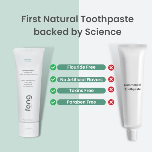 Non-toxic organic oral care formula: Unlike mass-produced tooth paste containing harmful ingredients like sulphates parabens & triclosan Fang teeth whitening toothpaste is a fluoride free toothpaste made with safe and gentle ingredients. It is organic ora
