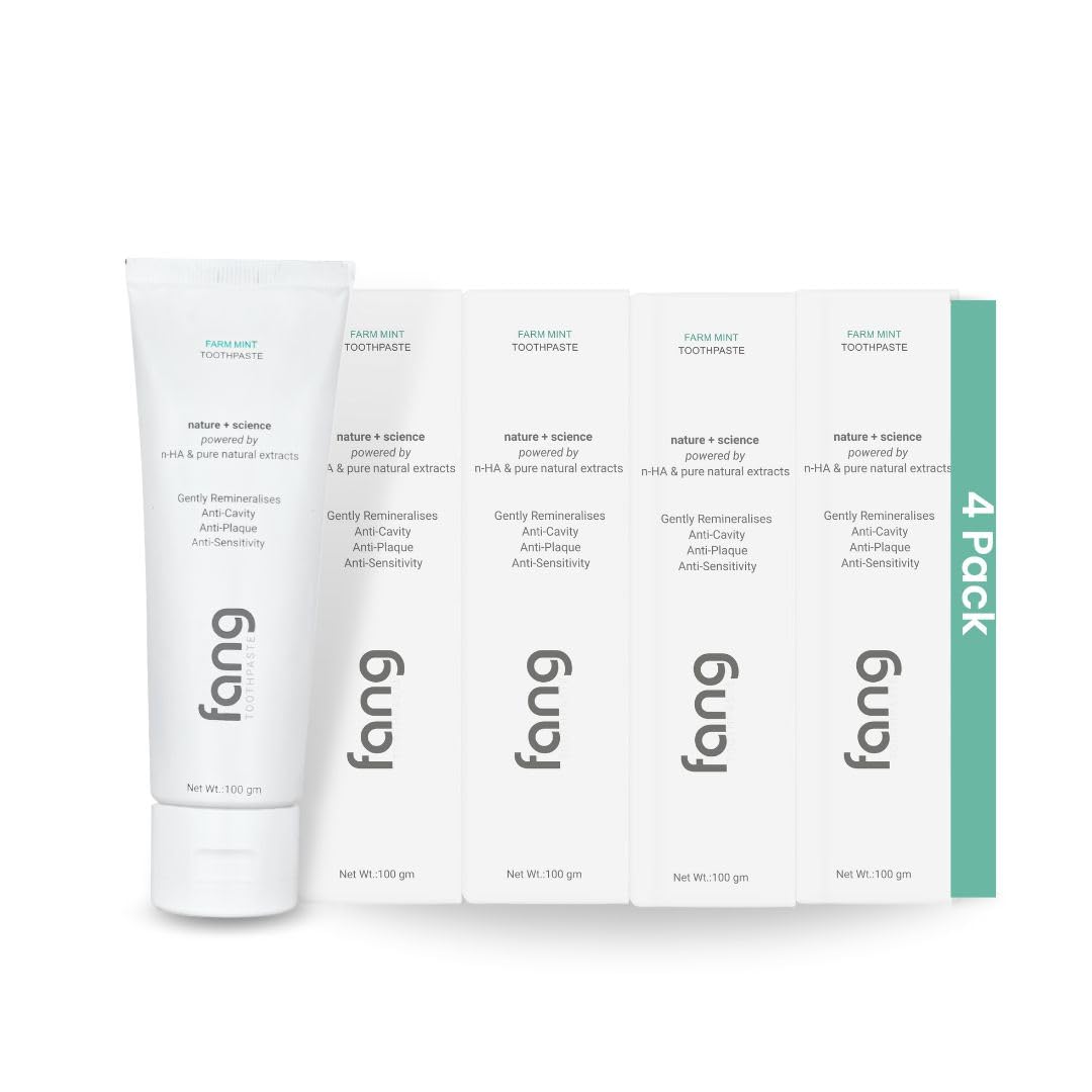 Fang Natural Nano Hydroxyapatite (N-Ha) Farm Mint Toothpaste (4 X 100 gm) | Teeth Whitening Oral Care | Fresh & Tooth Protection for Adults | Vegan, Fluoride Free & Non Toxic