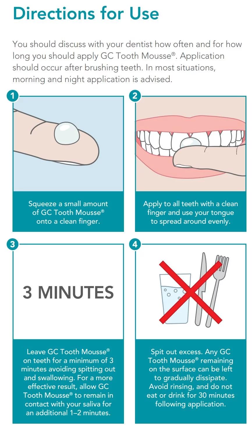Tooth Mousse and Tooth Mousse Plus are topical tooth crèmes. Both of the products bind calcium and phosphate to the tooth surfaces plaque and surrounding soft tissue. They also contain RECALDENT (CPP-ACP) a special milk-derived protein . This technology has a unique ability to deliver bio-available calcium and phosphate when the patientâs saliva is acidically-challenged by the normal digestive process. Every healthy teethâs need for calcium phosphate and fluoride makes MI Paste and MI Paste Plus essential for every home and dental office. They are both available in five tasty flavors: melon mint strawberry tutti-frutti and vanilla. Tooth Mousse is not a toothpaste; it is a topical tooth crème that can be used safely several times daily. Both products release vital minerals into the mouth when and where needed