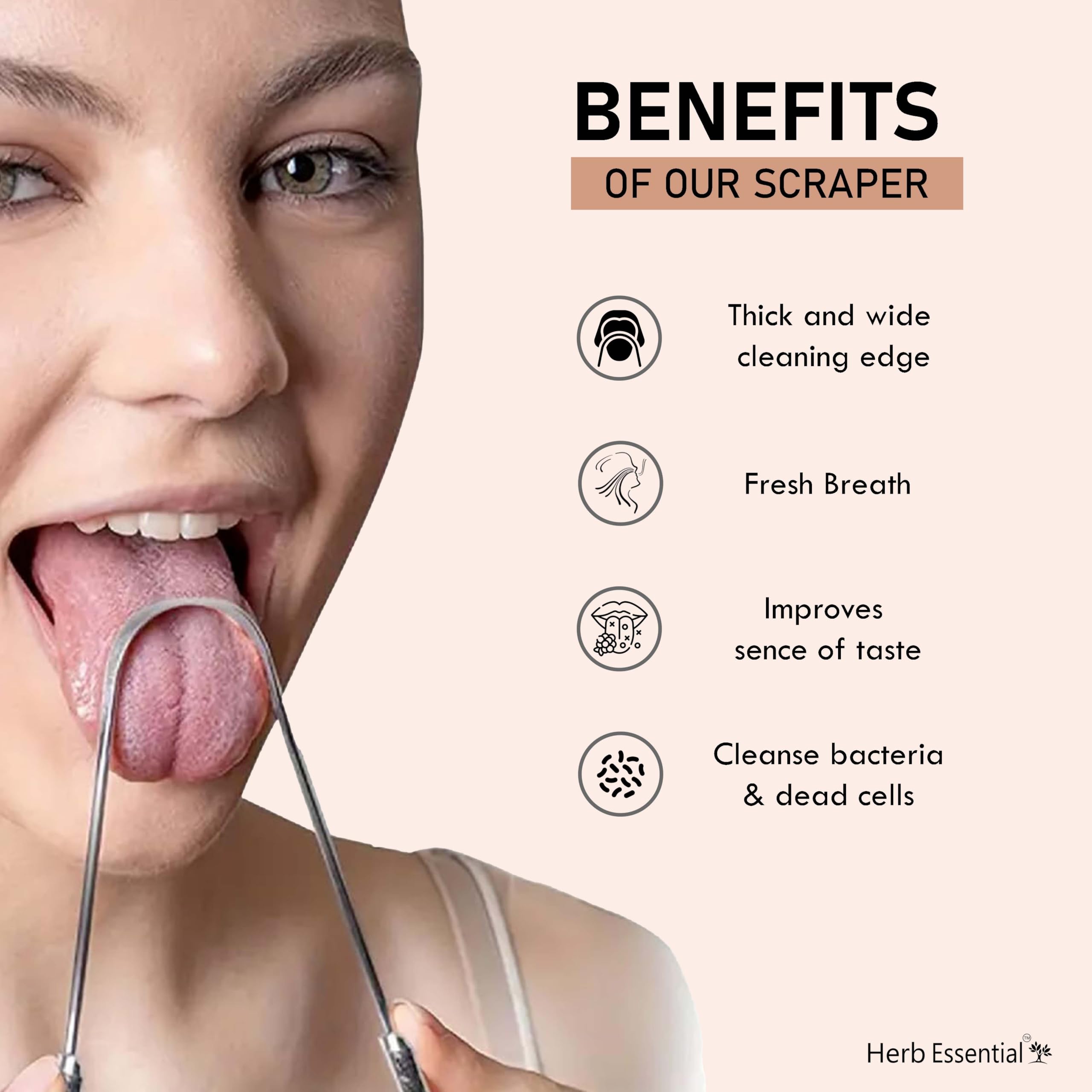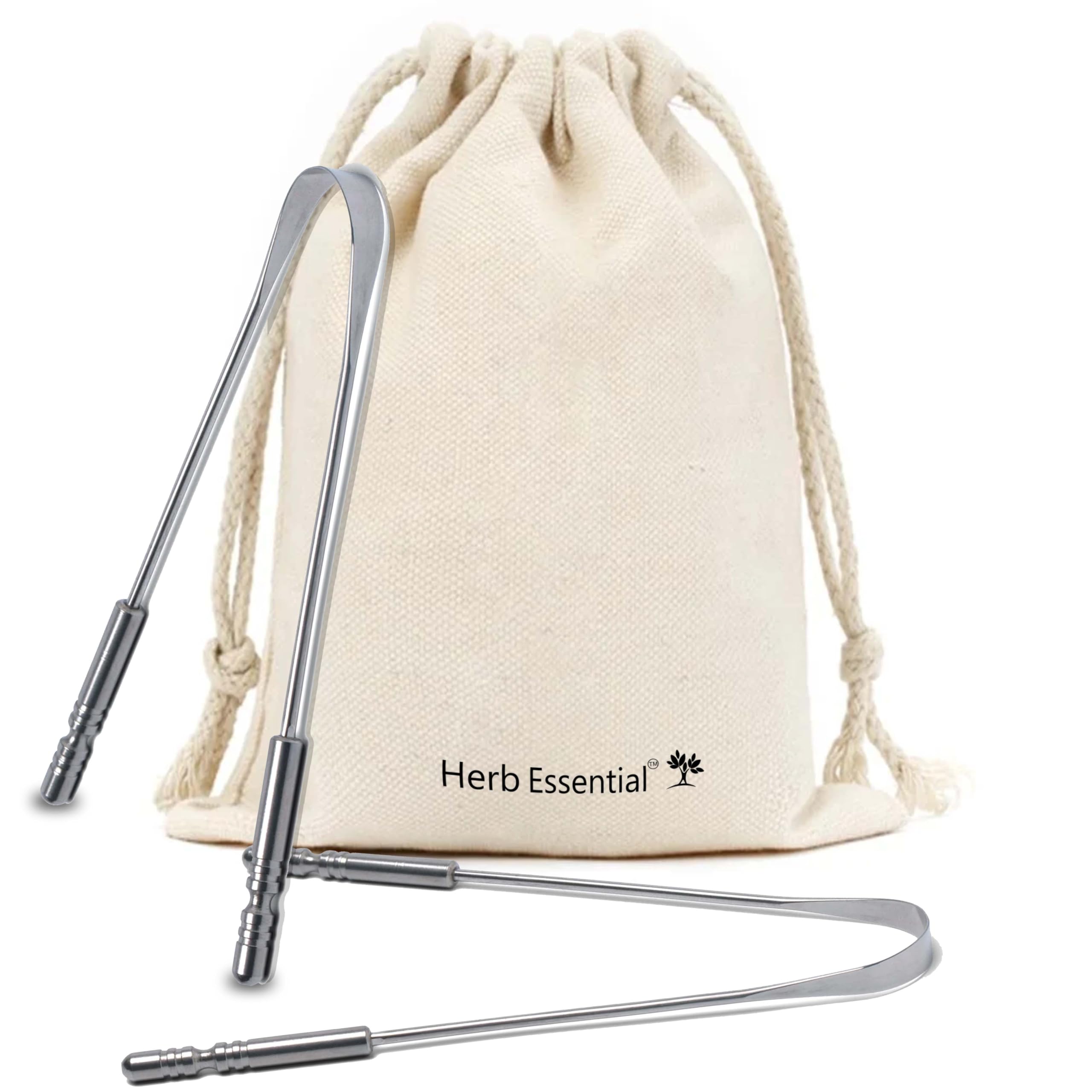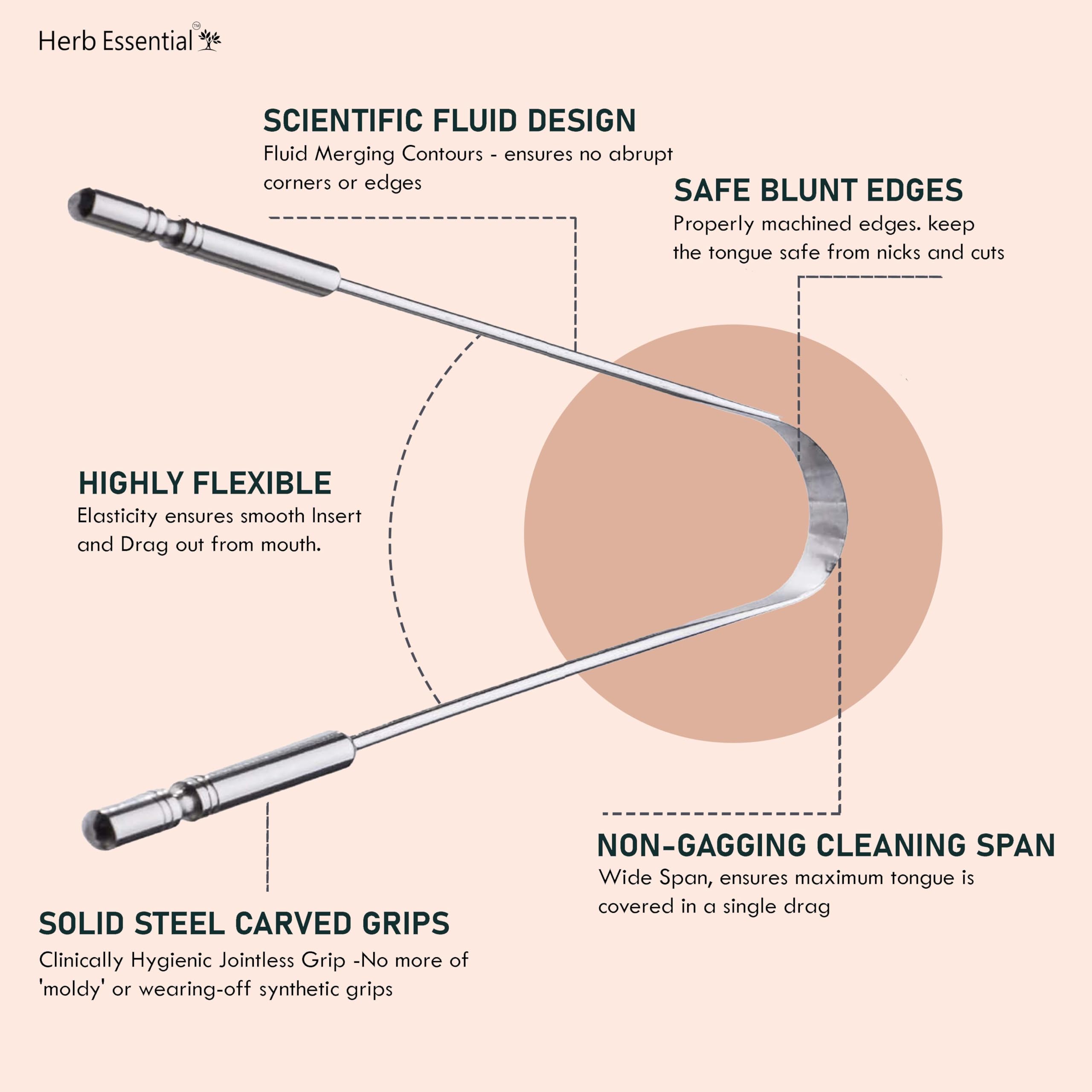 Herb Essential Stainless Steel Tongue Cleaner | For Fresh Breath & Bacteria Removal | Improved Taste Sense & Oral Hygiene | 100% Pure Indian Stainless Steel Tongue Scraper For Men & Women (Pack Of 2)