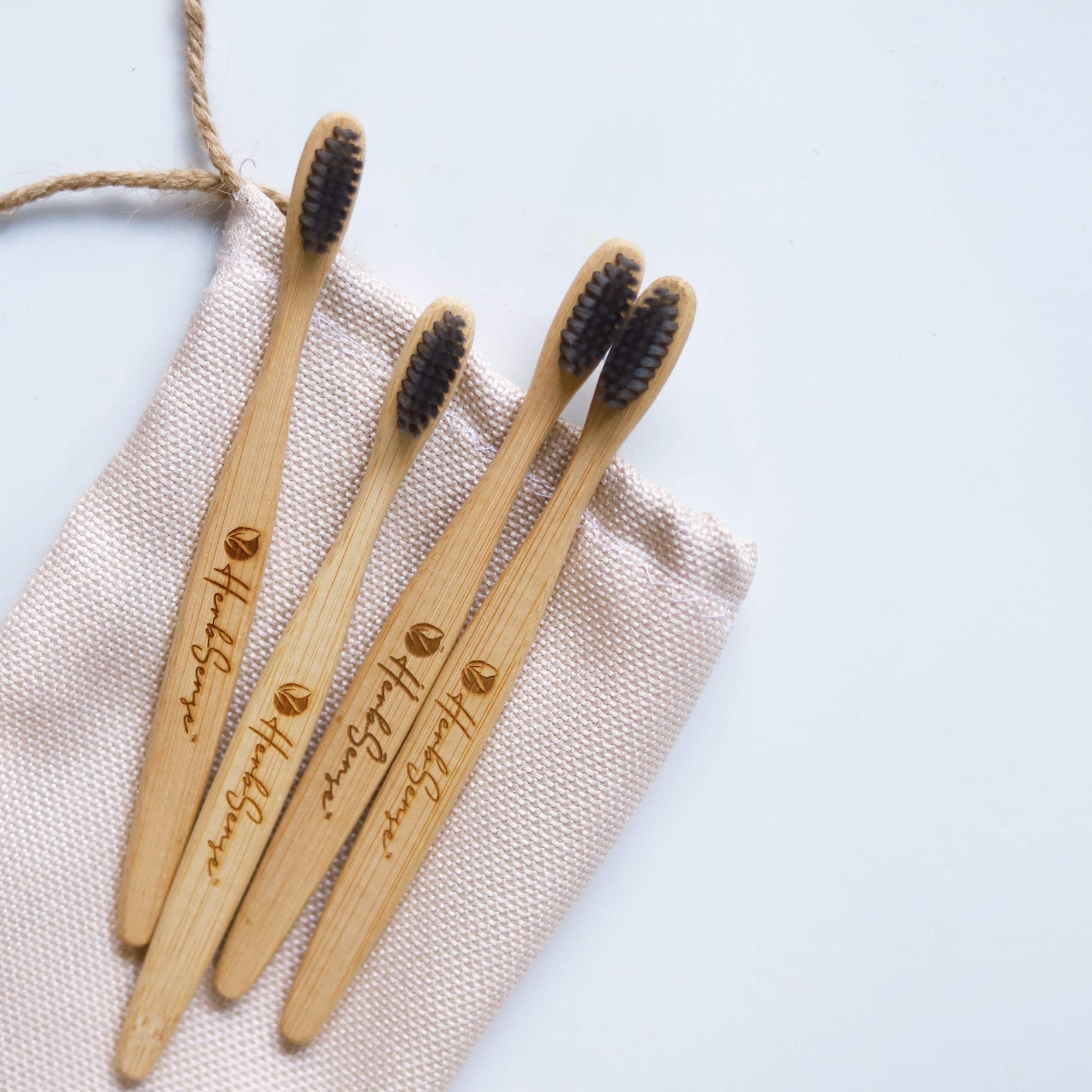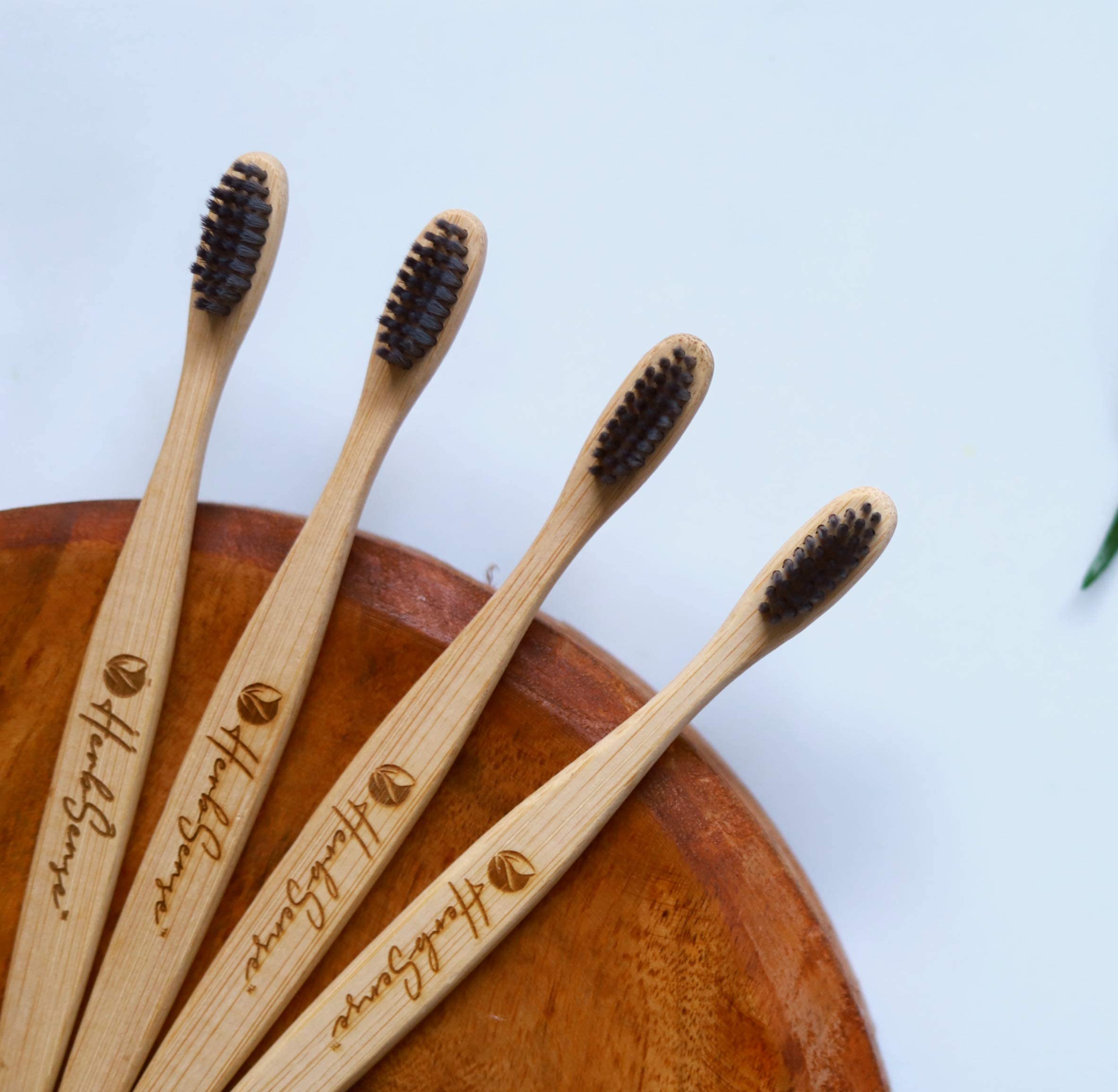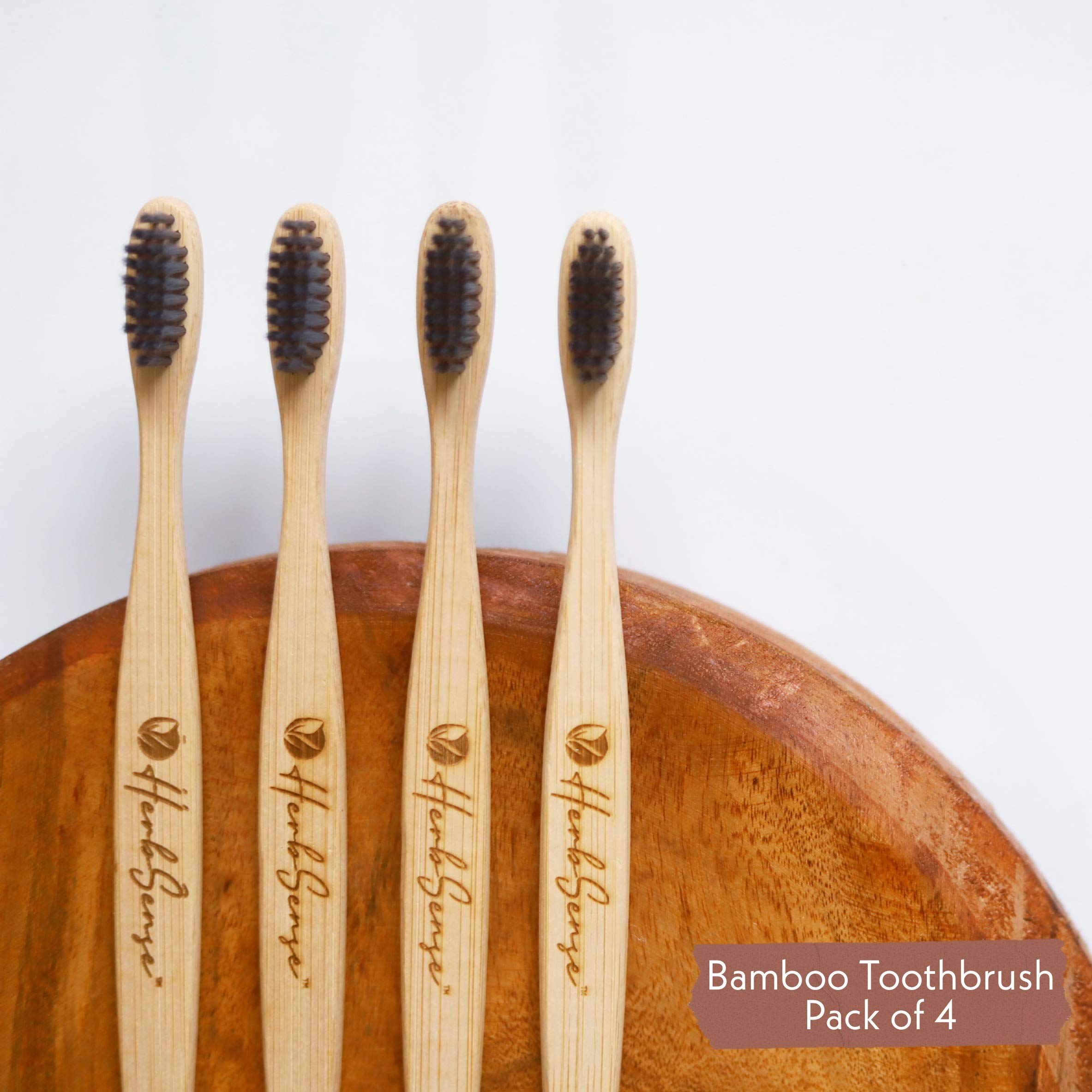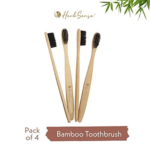 Herbsense Adult Bamboo Manual Toothbrush With Charcoal Activated Soft Bristles-Gentle On TeethAnti BacterialLight WeightEco FriendlyVeganNatural&Zerowaste-Dental&Oral Care-Combo Pack Of 4