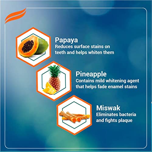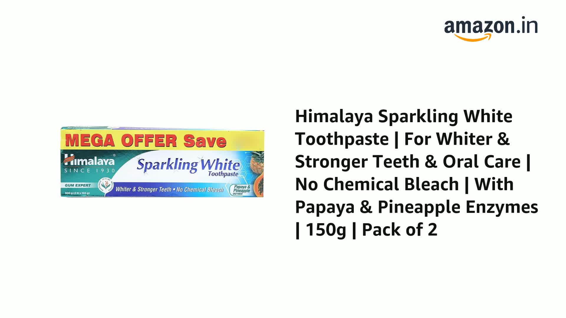 Himalaya Sparkling White Toothpaste has an advanced herbal formulation based on plant enzyme technology. It is the best teeth whitening toothpaste in India. The toothpaste contains Papain and Bromelain which are enzymes in papaya and pineapple that can help remove surface stains giving you whiter teeth by just using it for 2 weeks. It also plays a significant role along with Menthol in keeping the breath fresh and the teeth stain-free. The other natural ingredients in Himalaya Sparkling White Toothpaste like Miswak and Clove provide you with all-day protection from germs prevents discolouration & yellowing. Miswak helps prevent plaque and cavities toughen the gums and stop tooth decay. Its antiseptic properties eliminate oral bacteria and act as anti-inflammatory agents to protect gums. The Almond Essence in the whitening toothpaste is rich in flavonoids and phenolics. Cinnamon oil helps keep away bacteria responsible for tooth decay and gum disease. Himalaya brings the vision of herbal care to your daily life with our range of toothpaste enriched with ayurvedic ingredients. Himalaya Sparkling White Toothpaste is a budget-friendly natural and organic toothpaste. Scientists and herbalists at Himalaya have spent years researching the therapeutic benefits of herbs. We devote substantial time to authenticating the herb isolating its active marker testing its medicinal property and validating its safety and efficacy.