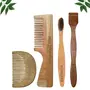 Mini Storify Truly Organic 1 Neem Beard Comb 1 Neem Handle Comb 100% Handmade |1 Neem toothbrush|1 Neem Tongue Cleaner Pack of 4