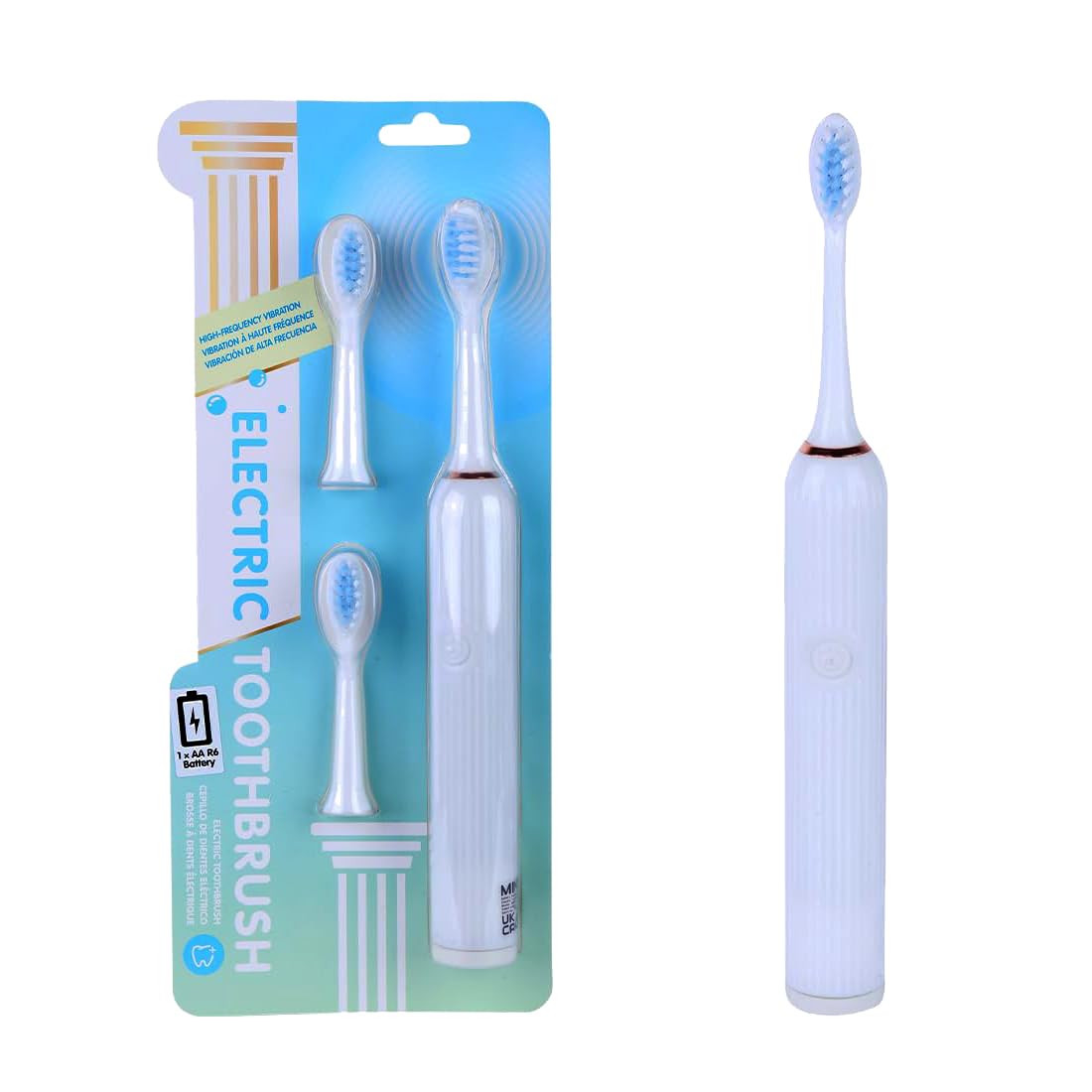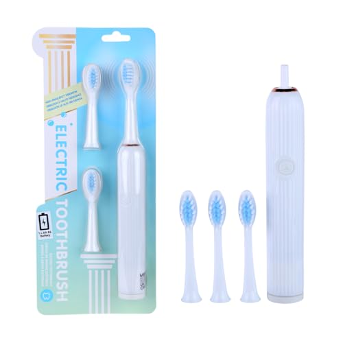 Elevate your oral care routine to new heights with our innovative Battery Powered Roman Pillar Design Electric Toothbrush. 1. Before using the device apply a small amount of toothpaste to the brush head. 2. Place the toothbrush in your mouth gently pressing it so that the bristles reach the gumline. Position the bristles against the teeth at a 45-degree angle and move slowly. 3. Use your finger to press the power button and turn on the device. 4. Install a new battery in the product when you have just purchased it or if it has not been used for more than three months or if it stops working. 5. Rotate and remove the bottom before inserting the battery then install correctly according to polarities.Notes1. If you have had oral or gum surgery in the past two months or are undergoing treatment consult with your dentist to see if you can use this toothbrush.2. Bleeding from the gums may occur when using this product for the first time. If bleeding persists for more than a week seek advice from your dentist.3. If you have a pacemaker or other electronic device in your body consult your doctor before using this toothbrush. 4. The brush head of this toothbrush is for personal use only do not share it. We recommend replacing the brush head every three months. 5. Do not disassemble or throw it into a fire to avoid the risk of explosion.ABOUT USAs a new growing and booming global consumption brand we have more than 5500 physical stores in more than 107 countries and regions around the world. With the philosophy of living with a smile we are spreading the idea of "LIFE IS SO FUN" bringing joy to the world!MINISO devotes ourselves to providing all of fashionable customers with beautiful creative budget practical home products beauty products and kinds of featured latest IP joint interesting products. Hope all of you enjoy a high-quality life with MINISO.
