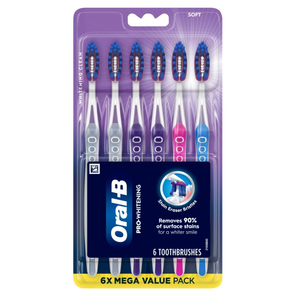 With the Oral-B 3D White Luxe Pro-Flex Manual Toothbrush you can discover a whiter smile and remove plaque. Thatâs because its dual-flexing head design combined with a unique Stain Eraser works together to remove up to 90% of surface teeth stains and reveal a more dazzling white smile. Gentle on gums but tough on stains 3D White Pro-Flex toothbrush is the revolution youâve been hoping for in your manual toothbrush. Color may vary.