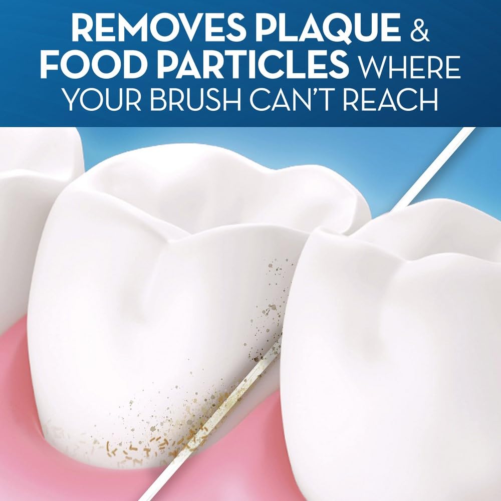 Brushing alone can't get to all the hard-to reach places where plaque builds up. But Oral-B EssentialFloss can. With its light wax coating and its shred-resistant texture it slides easily between your teeth. It helps clean the tough-to-get plaque away.