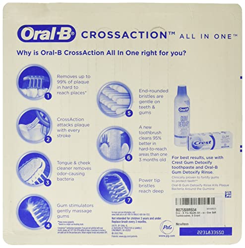 Tight spaces are the easiest places for plaque to build-up and the toughest to clean since straight-bristle toothbrushes struggle to reach them. But pro-health all-in-one with cross action bristles attack plaque from the perfect angle--an optimal 16 degree--cleaning better than straight ones. Plus pro-health's tongue cleaner helps remove germs from the tongue.