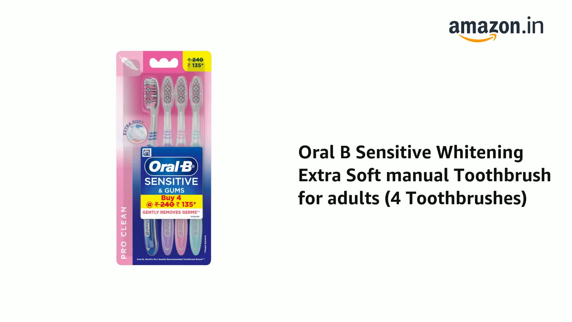 HomeHealth & PersonalPersonal CareOral CareOral-B Pro Clean Sensitive Extra Soft toothbrush For Adults Extra Soft bristles Gently Removes Germs Multicolour Toothbrush SetOral B Dentist Recommended Brand (Pack of 4)