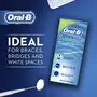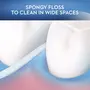 Stiffened end to floss under appliances; spongy-floss to clean around appliances and in wide spaces; regular floss to remove plaque under gumline.