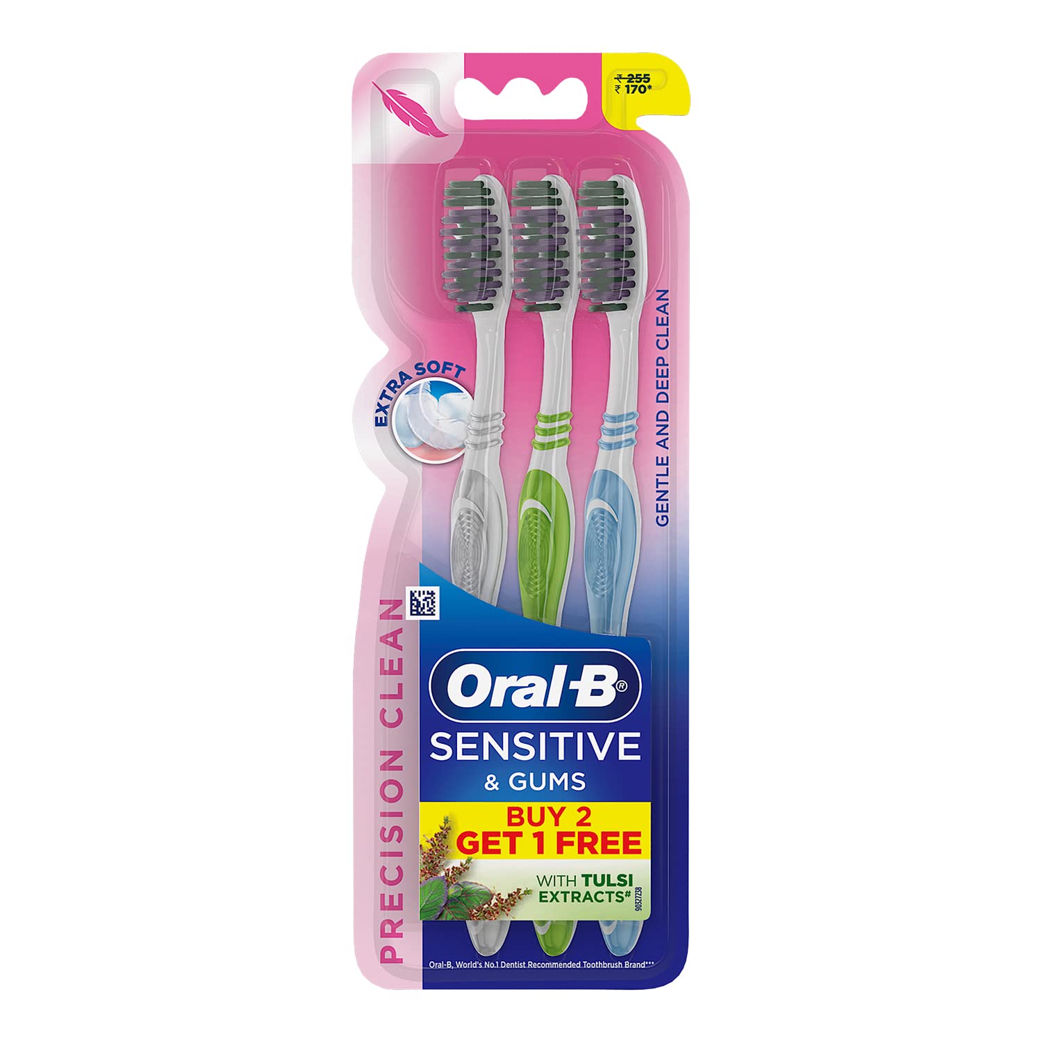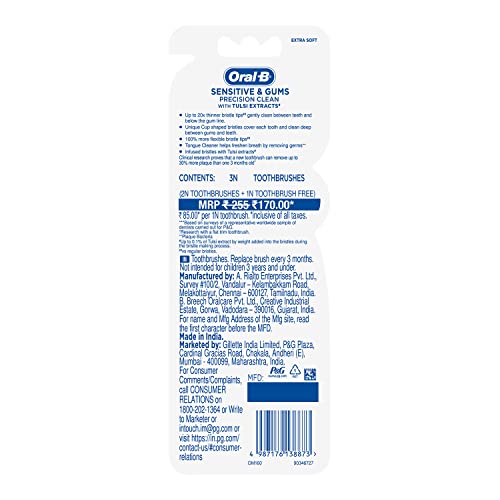 Oral-B is the World's No. 1 Toothbrush brand used and recommended by dentists worldwide which brings to you and your family revolutionary brushing solutions with best in class technology to ensure you and your family get healthier and cleaner mouth. Oral B Sensitive & Gums range is developed for Sensitive Gums and Teeth. Precision Clean brush comes with upto 20x thinner bristle tips that gently clean between teeth and below the gum line.