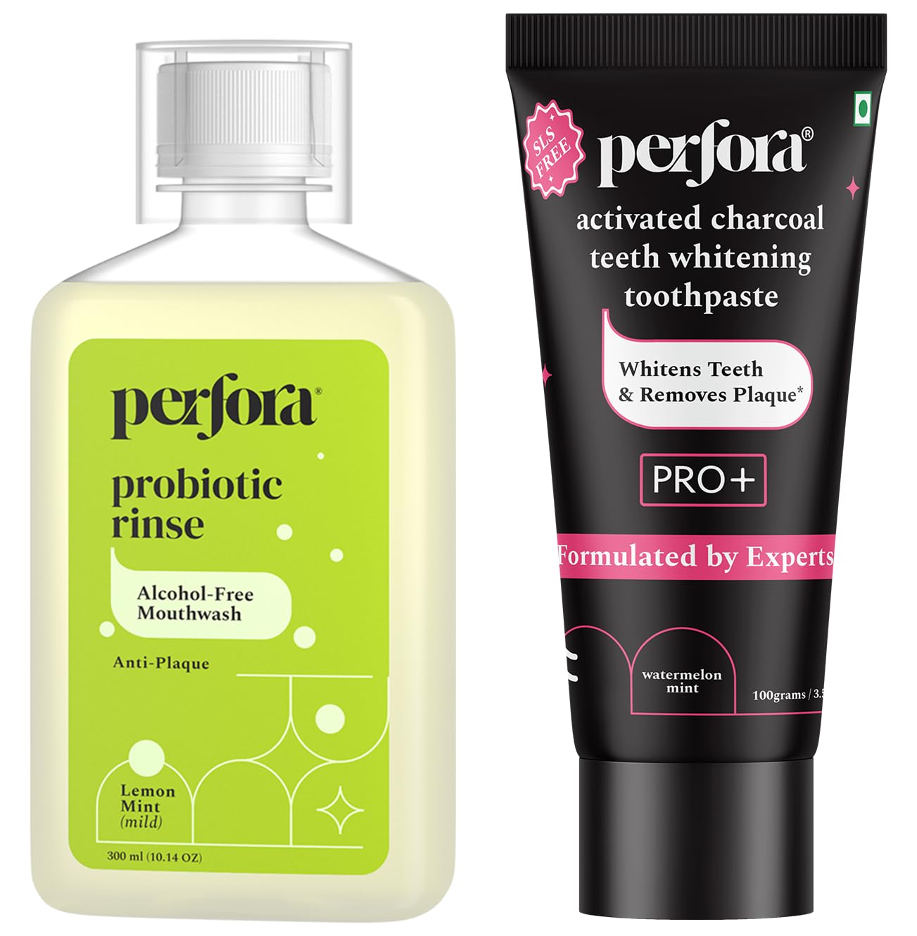 Perfora kit for teeth whitening is the perfect combination of scientifically proven and natural ingredients. The formulation contains active ingredients like Imercare Perl White 19 and Bromelain enzymes that are clinically proven to remove surface teeth stains and whiten teeth. This toothpaste is SLS (Sodium Lauryl Suphate) Free Titanium Dioxide Free and Sodium Saccharin Free. This formulation uses a more effective substitute of oride known as Nano Hydroxyapatite for teeth remineralization and hence this toothpaste is oride Free. TEETH WHITENING TOOTHPASTE: Perfora Whitening Toothpaste Dream White helps to remove yellow teeth stains and improve the color of your teeth. This Teeth Whitening Toothpaste is enamel safe and you wonât experience any sensitivity. ACTIVATED TOOTHPASTE WITH DUAL BENEFITS: India's first Activated Toothpaste for enamel-safe teeth whitening and plaque removal. The toothpaste is made of Bromelain enzymes and Paenzymes for eliminating teeth stains Nano Hydroxyapatite for teeth remineralization Zinc Citrate for plaque removal Activated and ImerCare PerlWhite 19 for teeth whitening. TEETH WHITENING POWDER - Perfora Teeth Whitening Powder helps whitens your teeth with the power of activated . Itâs your new best friend for ifying the mouth removing bad breath and gently polishing away stains quickly and easily. Our naturally brilliant formula eliminates stains caused by coffee wine and other foods you can't live without. With as little as one dab and a brush our powder leaves your teeth whiter without sensitivity.