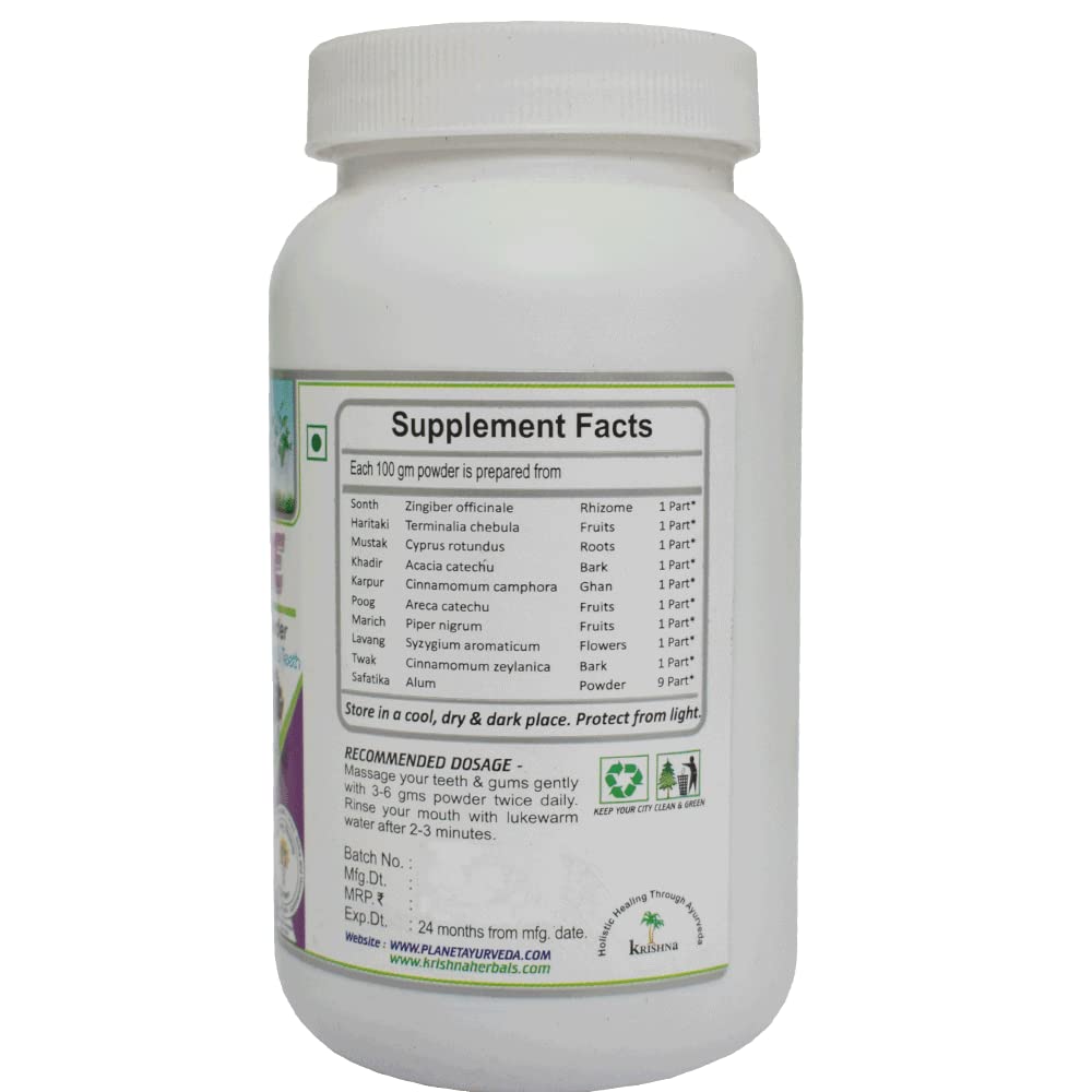 Ingredients: Gum care powder is made using the blend of pure sonthi haritaki mustak khadir karpur and twak etc.