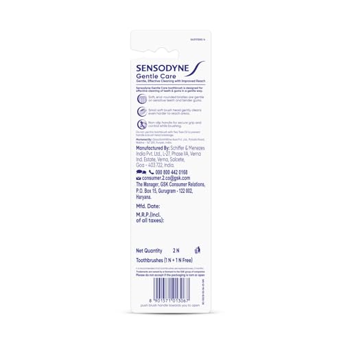 Sensodyne has designed and formulated an entire range of toothbrushes as well as toothpastes to accommodate different needs. Cleaning effectively is important for people especially with sensitive teeth - to help prevent plaque build-up while minimizing further wear and tear that can be caused by excessive brushing. Sensodyne Gentle Care Toothbrush comes with soft round ended bristles - which flex on contact with surfaces and is therefore gentle on teeth and gums. It has a small oval head shape to ensure reach in hard-to-reach areas achieving effective cleaning. The especially designed handle of the toothbrush provides an ergonomic grip. Sensodyne Gentle Care toothbrush is available in a Buy 1 Get 1 offer at an attractive price. Brush your teeth gently twice a day to avoid plaque build-up. Do not brush too hard as applying too much pressure can lead to overbrushing. It is recommended to change your toothbrush every three months. For optimal care of tooth sensitivity we recommend brushing in combination with Sensodyne toothpaste twice a day.