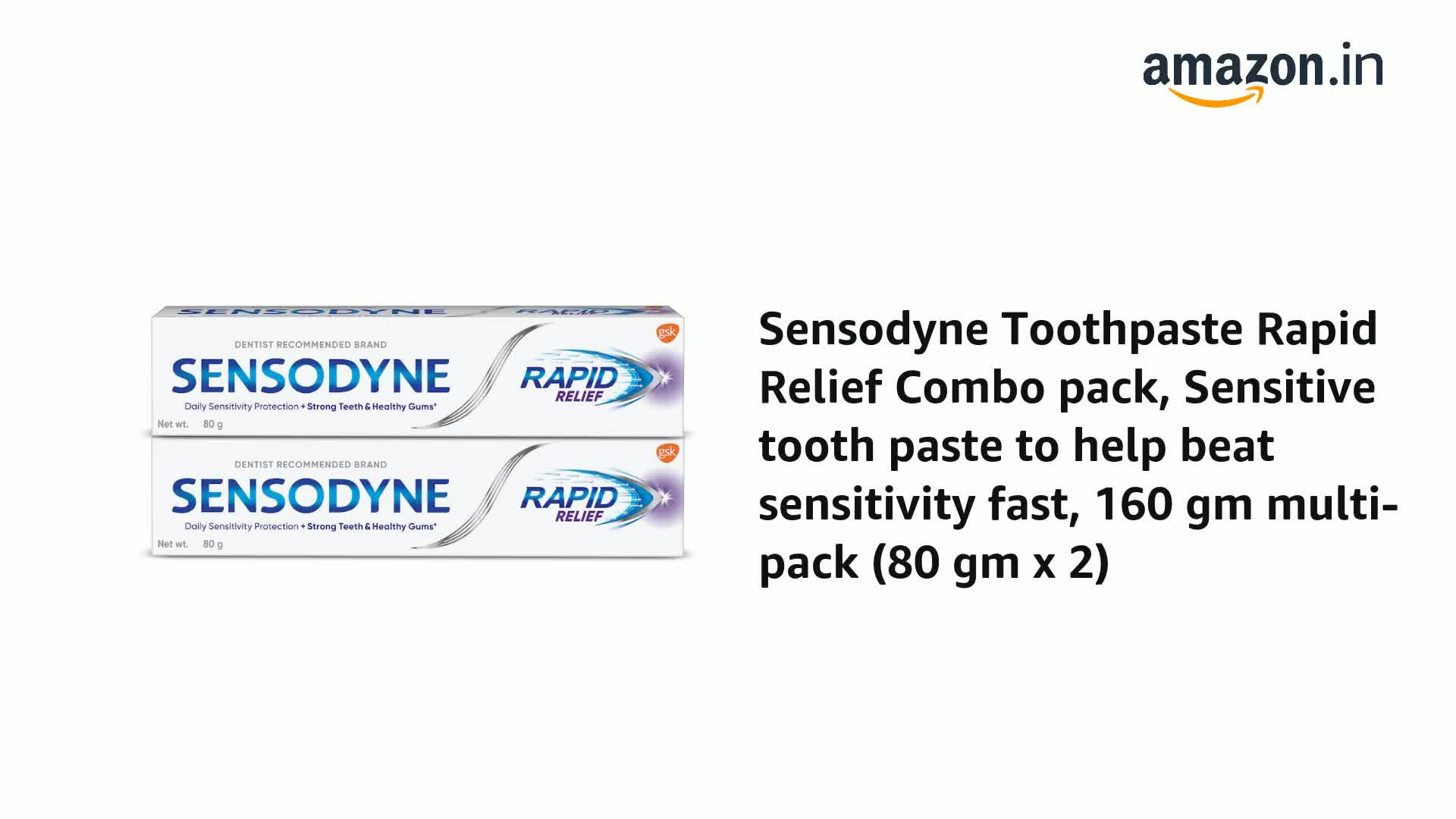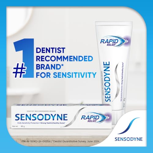 When the protective layer of teeth (enamel) is worn away or gums recede the dentine underneath becomes exposed. When the exposed dentine comes in contact with hot cold sweet or sour food and drinks it can trigger a sharp short sensation called tooth sensitivity. Sensodyne Rapid Relief is a daily fluoride toothpaste that acts rapidly against tooth sensitivity while still providing the benefits of a regular paste like strong teeth and health gums. It starts to act rapidly by building a mineral-like layer over exposed dentine and within microscopic channels. The paste also builds ongoing protection with every brush so that you can enjoy your favorite foods and drinks without the worry of sensitive teeth. Sensodyne Rapid Relief tooth paste is available in two packs - 80 gm and 160 gm (80 gm * 2) combo pack. Brushing twice a day provides protection from tooth sensitivity. Always follow instructions and guidance included on the pack before use.