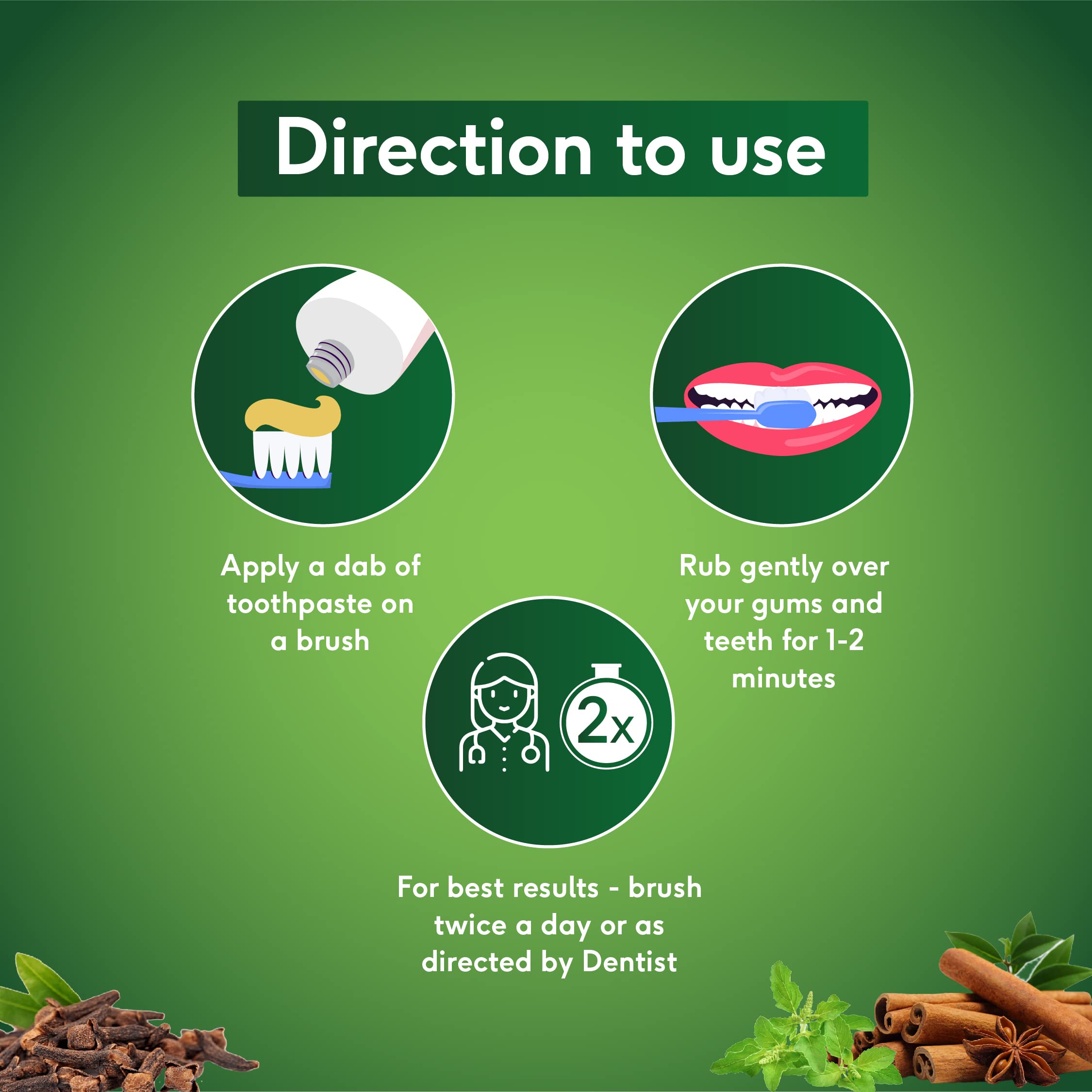 • GOODNESS OF HERBS FOR COMPLETE ORAL CARE: Enriched with the power of Cloves Charcoal Cinnamon Pepper Bakul & Mayaphal; our toothpaste takes care of your teeth gums and breath for overall protection and hygiene.</p>