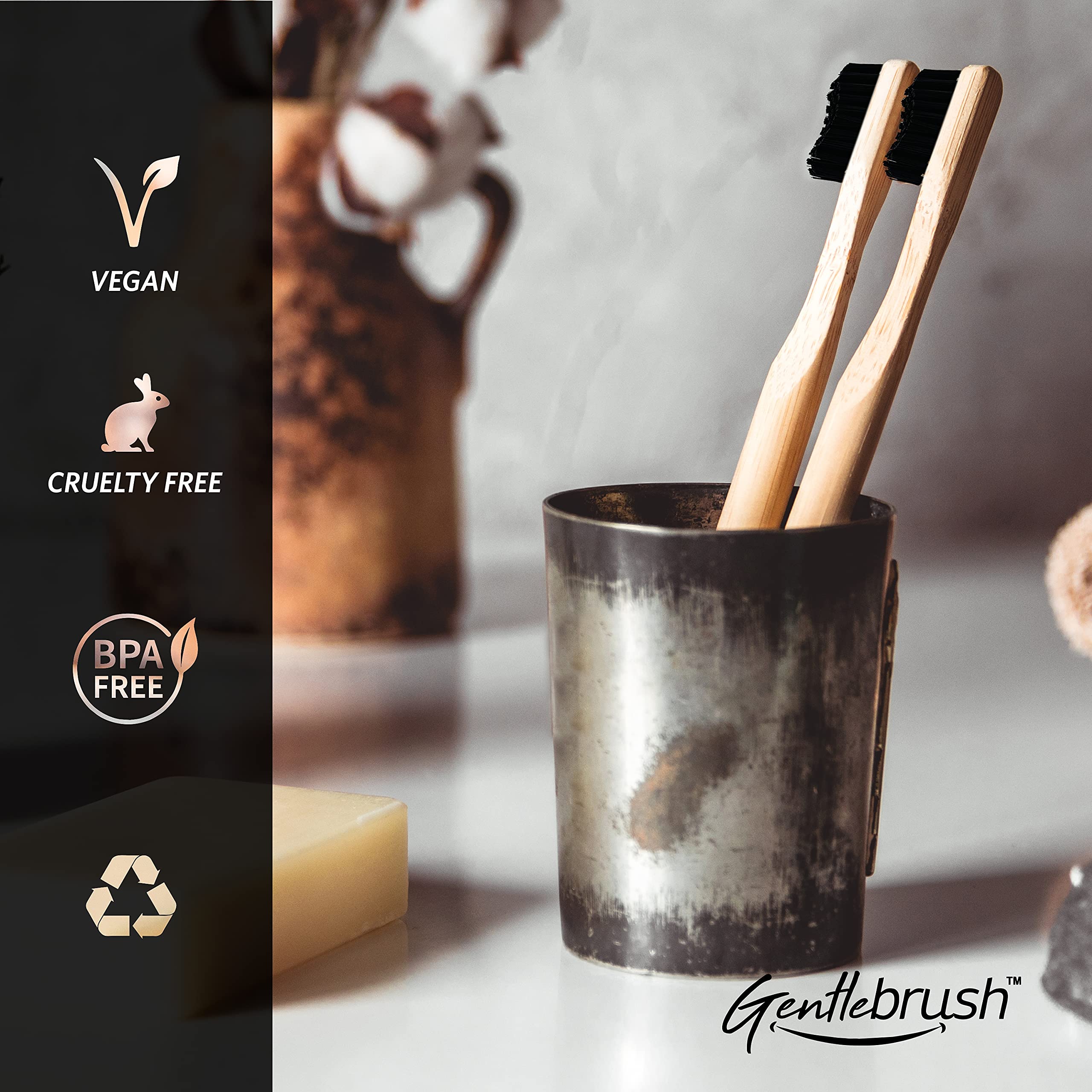 Sustainable Material: Our toothbrush handle is made from 100% natural bamboo a renewable resource that grows quickly and requires minimal water and no pesticides.