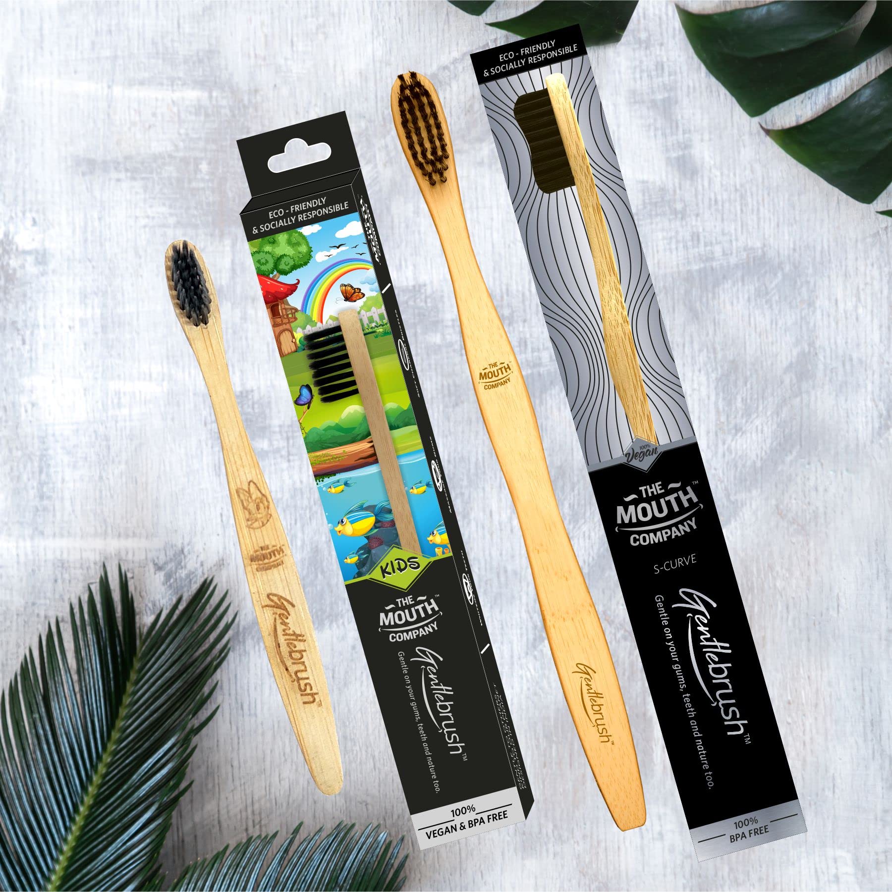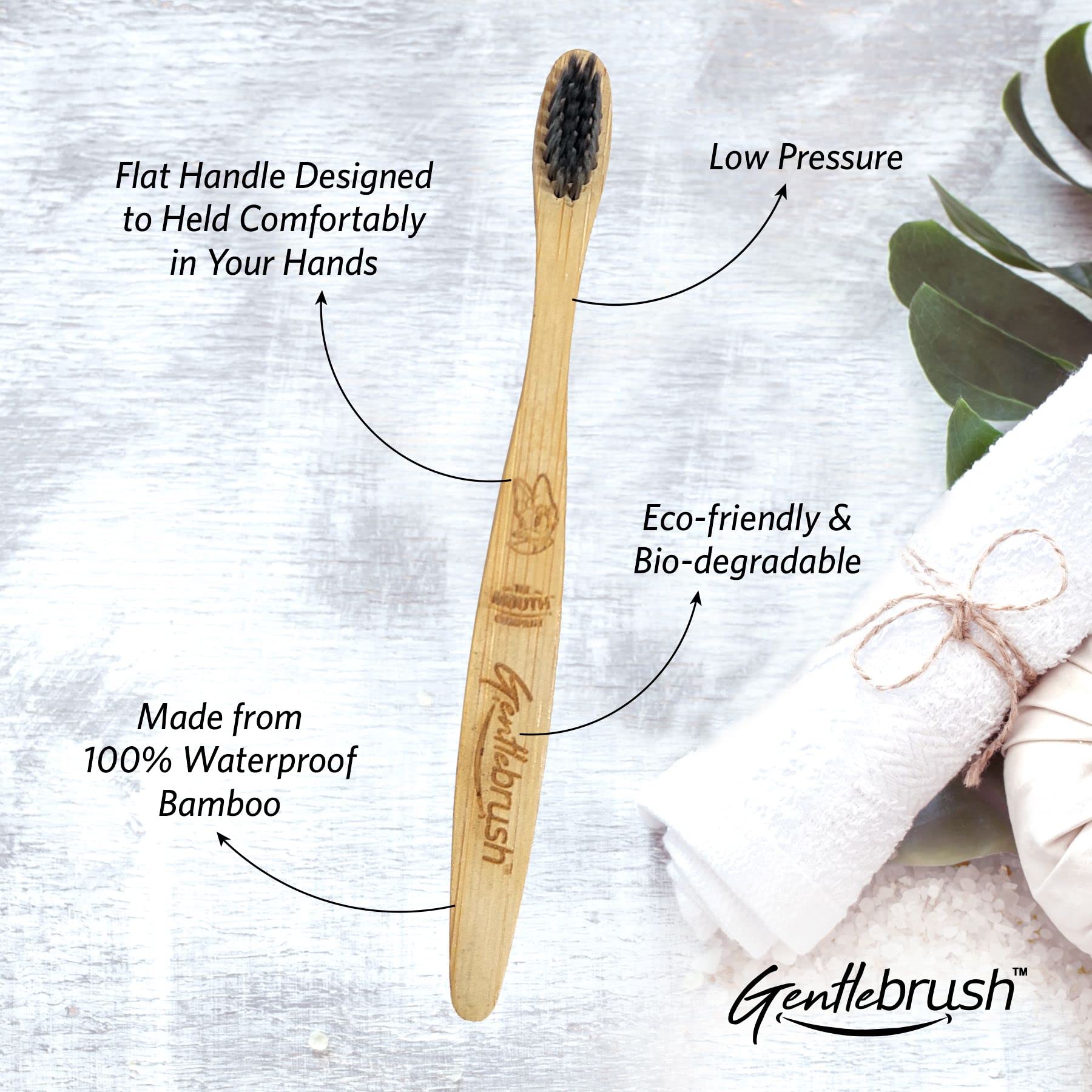 The Mouth Company Organic Bamboo Toothbrush Gentlebrush – Good for you Good for the Environment is Developed by Dentists and Research Analysts and is suitable for both Adults & Kids. With Gentlebrush start your day in a fresh new way. The low-pressure BPA-free bristles are infused with activated charcoal which helps in better whitening and prevents foul breath fighting plaque and bacteria. These bamboo toothbrushes are 100% Biodegradable Anti-Bacterial Eco-friendly and ready to complement your oral regime perfectly for better oral health and lifestyle. This bamboo toothbrush combo pack has one handmade natural S-Curve handle toothbrush for adults and one bamboo toothbrush for Kids which is designed to fit comfortably in your hand while making it easier for you to clean your teeth. It has a handle that gives it a comfortable grip for better cleaning.