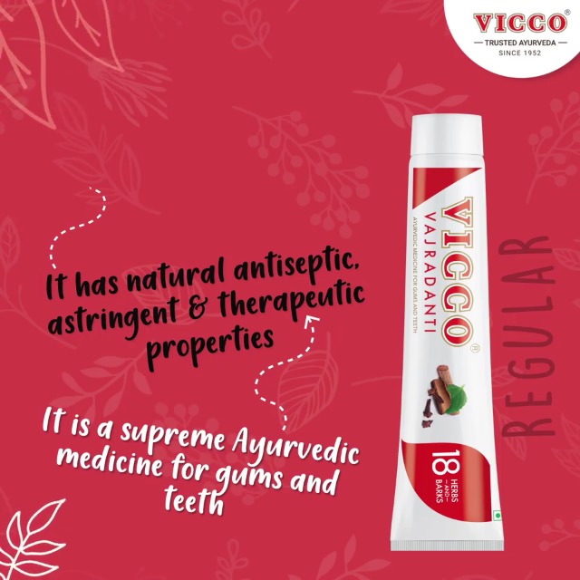 • FEATURES: Vicco Vajradanti toothpaste provides you with the wonderful properties of Ayurveda. The power of Ayurveda and science gives this toothpaste antiseptic astringent and therapeutic properties.